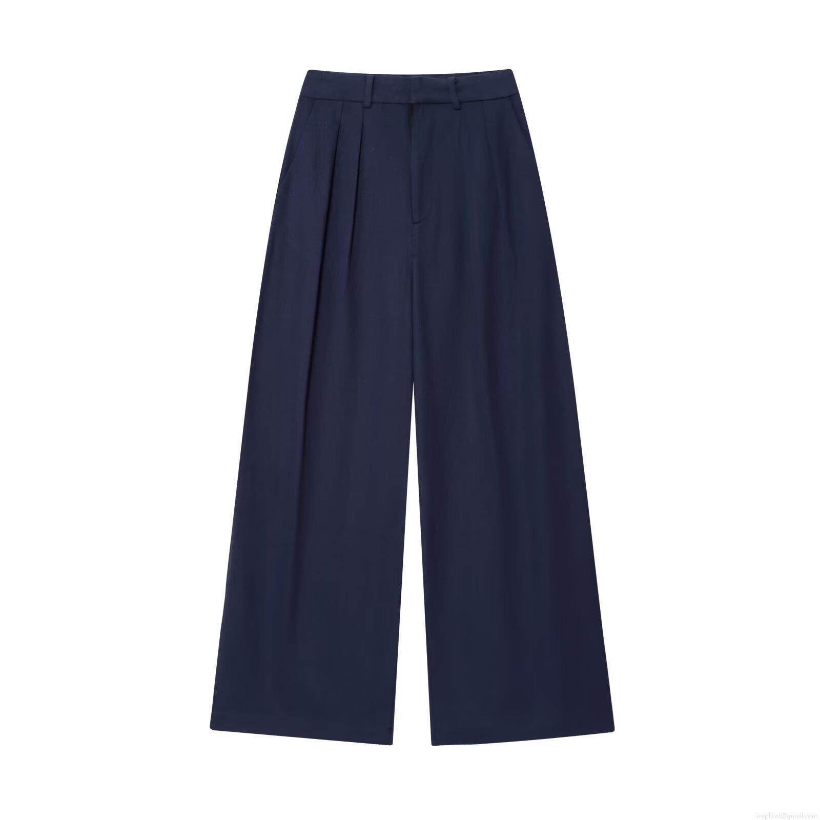 Solid Color, V-neck, Pleats, Single-breasted, Wide-leg, High-waisted