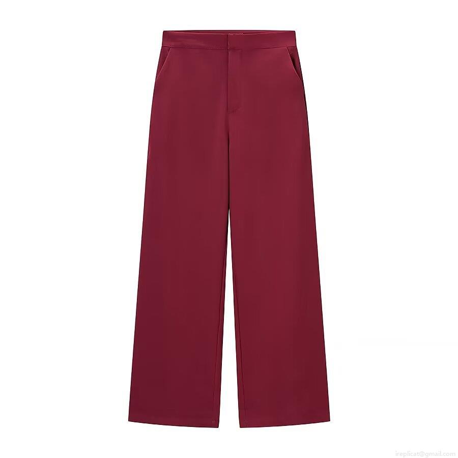 European Style Women Wine Red Blazer and Pants Set Polyester Feather Trim Peaked Lapel Long Sleeve Jacket High Waist Wide Leg Casual Trousers Two Piece Outfits Women