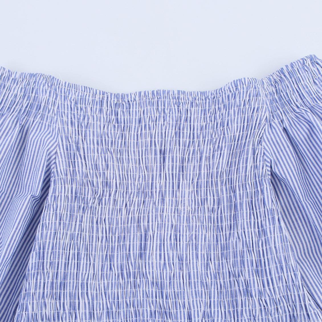 Summer Women Blue White Striped Polyester Spandex Blend Floral Embroidery Set V Neck Tie Front Top Strapless Smocked Midi Dress Wide Leg Pants Holiday Beach Casual Clothing