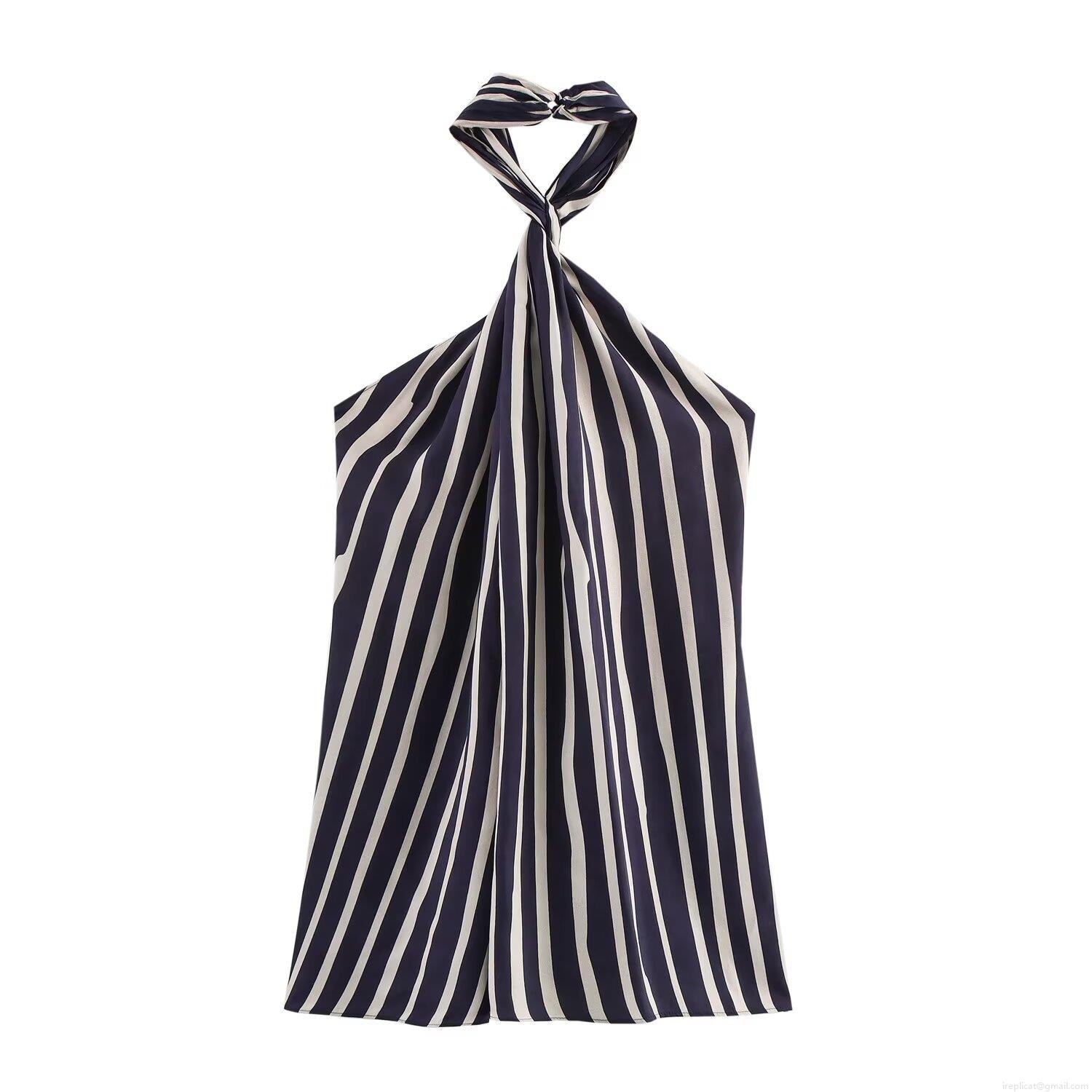Stripe, Drawstring, Neckband, Backless, High-waisted
