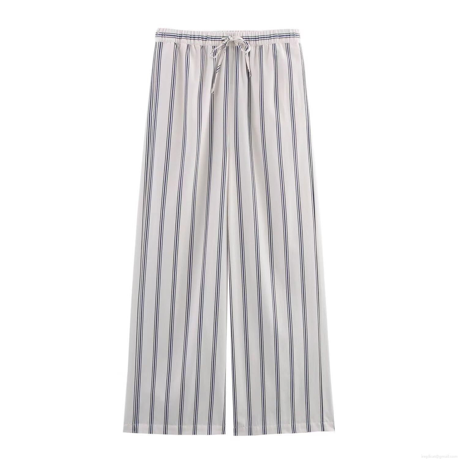 • Summer Women Striped Halter Neck Backless Top And High Waist Wide Leg Drawstring Pants Two Piece Set Streetwear Casual Outfits