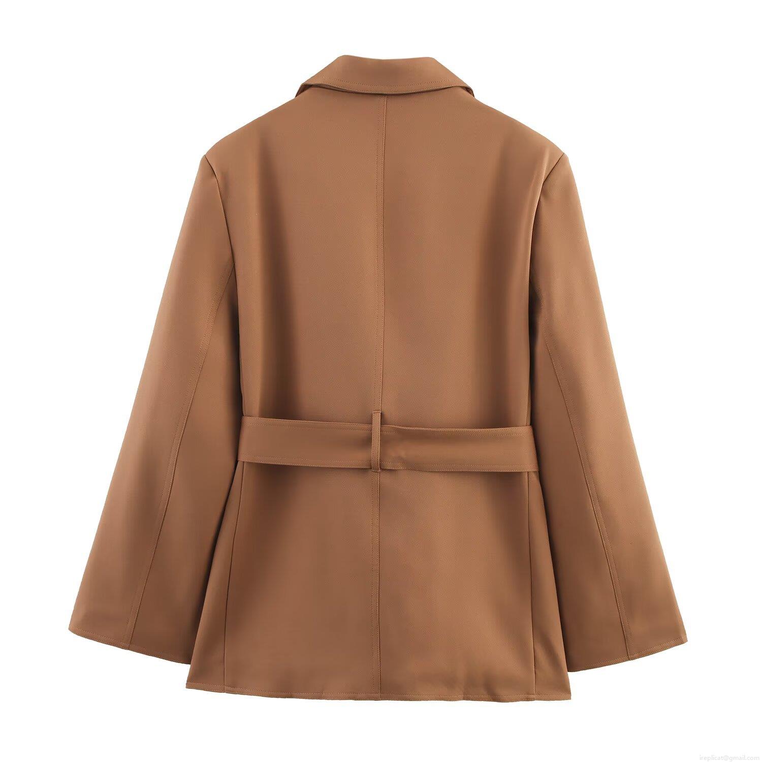 • Women Autumn Fashion Loose Blazer And High Waist Wide Leg Pants Set With Belt Polyester Blend Solid Color Streetwear Two Piece Suit