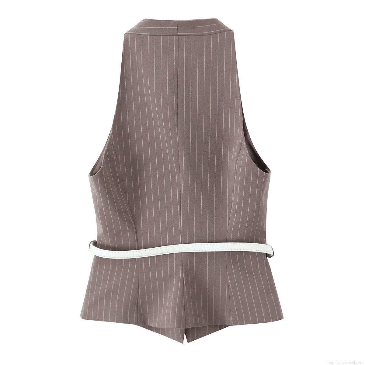 Women Business Casual Striped Vest And Wide Leg Pants Two Piece Set Sleeveless V Neck Suit Waistcoat High Waist Trousers With White Belt Elegant Office Lady Street Style Outfit