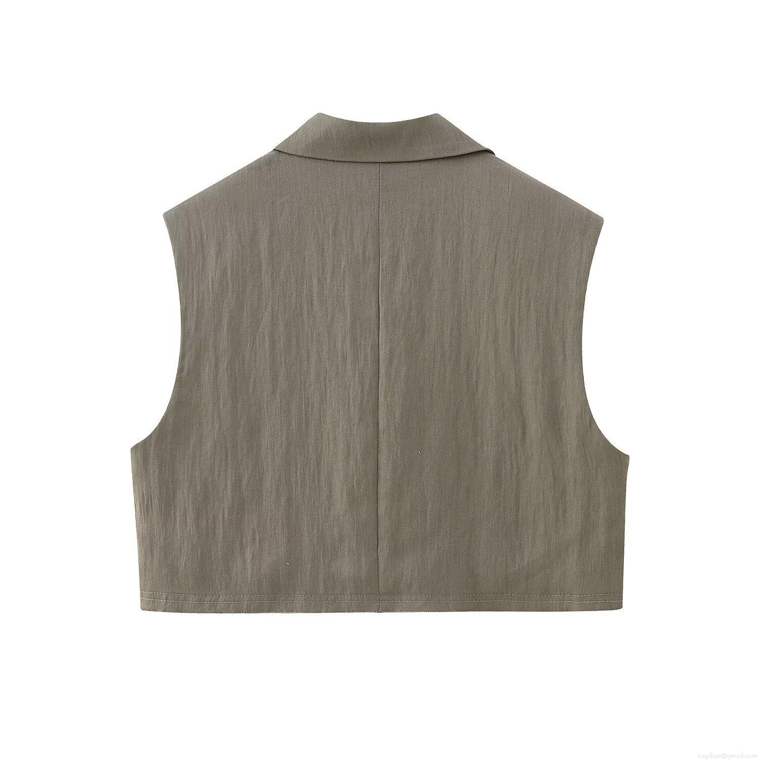 • Women Casual 100% Polyester Short Waistcoat Vest And Straight Leg Pants Suit Set Solid Color Notch Lapel Sleeveless Top Fashion Trousers Outfit