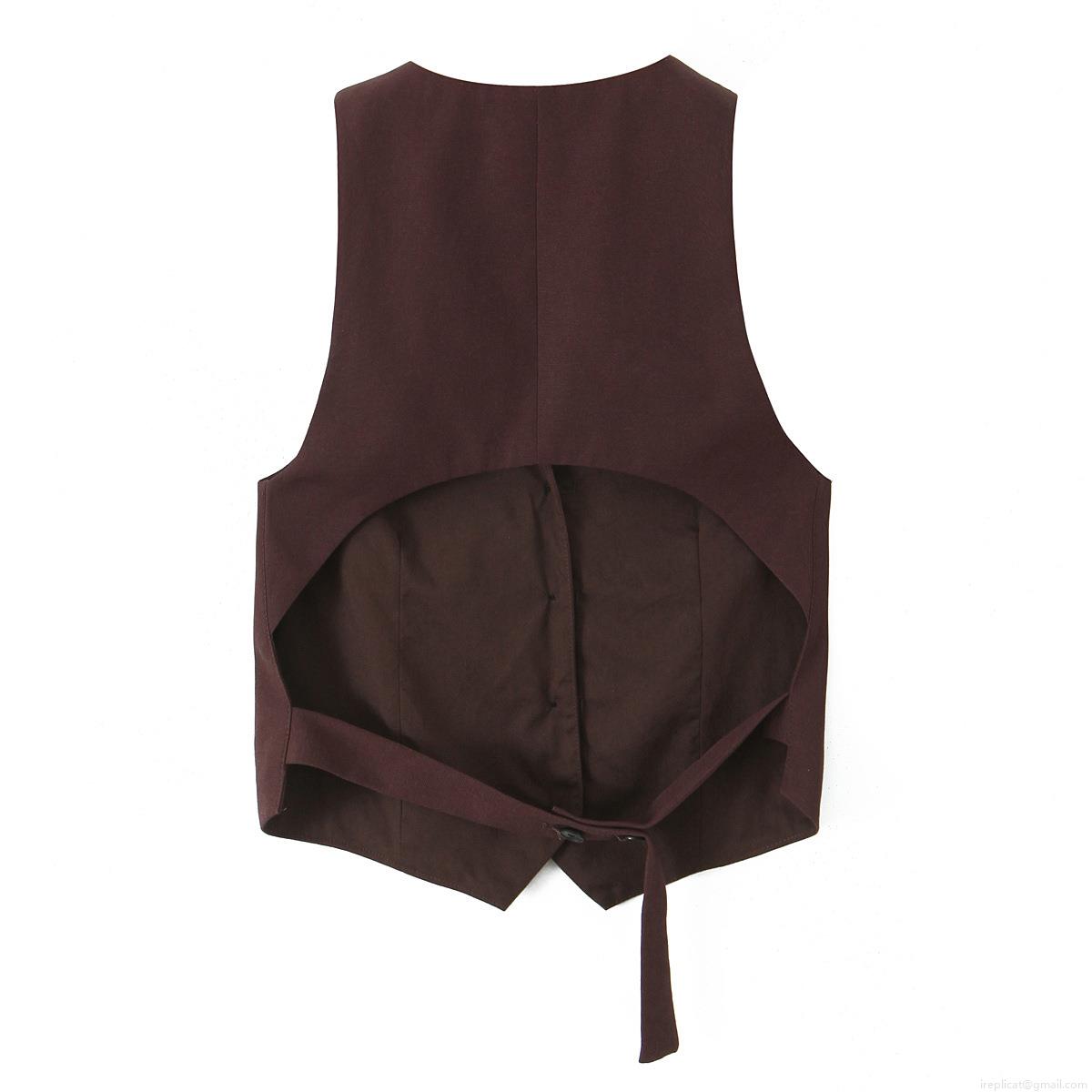 • Women Casual 2 Piece Suit Set Sleeveless Backless Vest Waistcoat And High Waist Wide Leg Pleated Trousers Coffee Brown Streetwear Party Clubwear Outfits