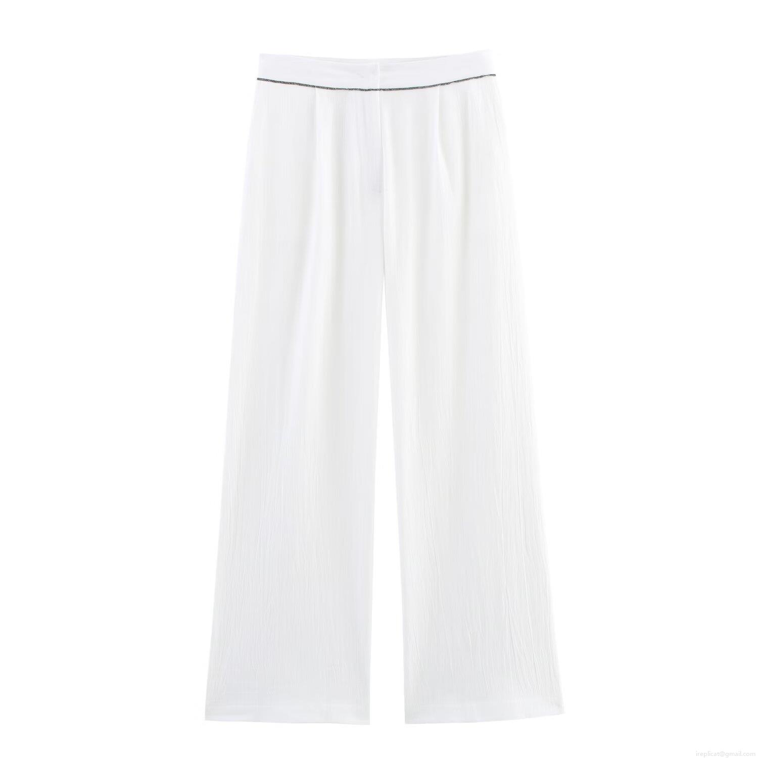Solid Color, Lace-up Design, Piping Decoration, Contrasting Color Piping, Wide-leg Style, Double-breasted