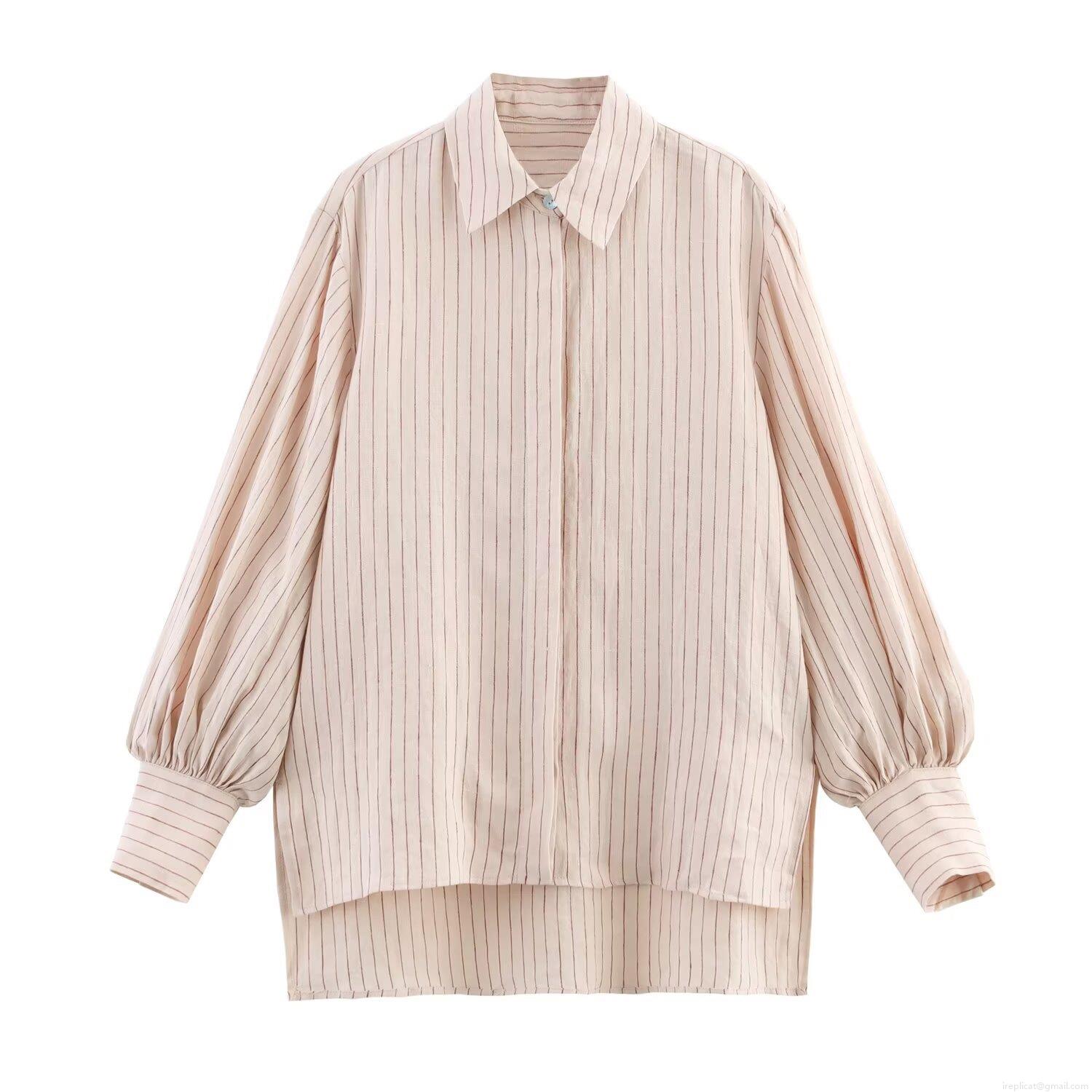 Solid Color, Stripe, Bead, Vertical Stripes, Lace, Lapel, Lantern Sleeves