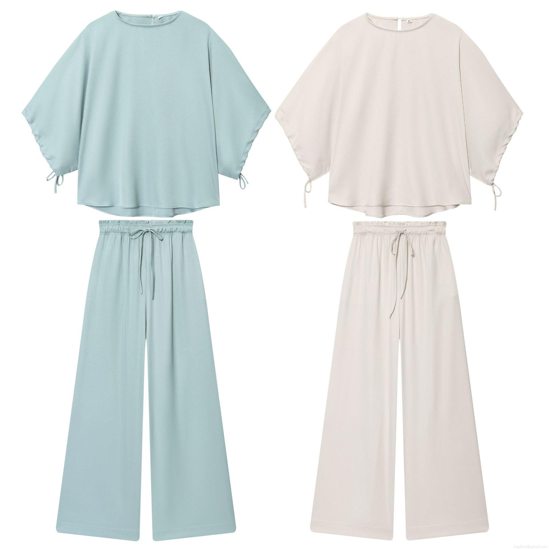 • Women Casual Polyester Two-Piece Set Puff Sleeve Round Neck Top And High Waist Wide Leg Drawstring Pants Lounge Wear Solid Color Comfortable Streetwear Outfits