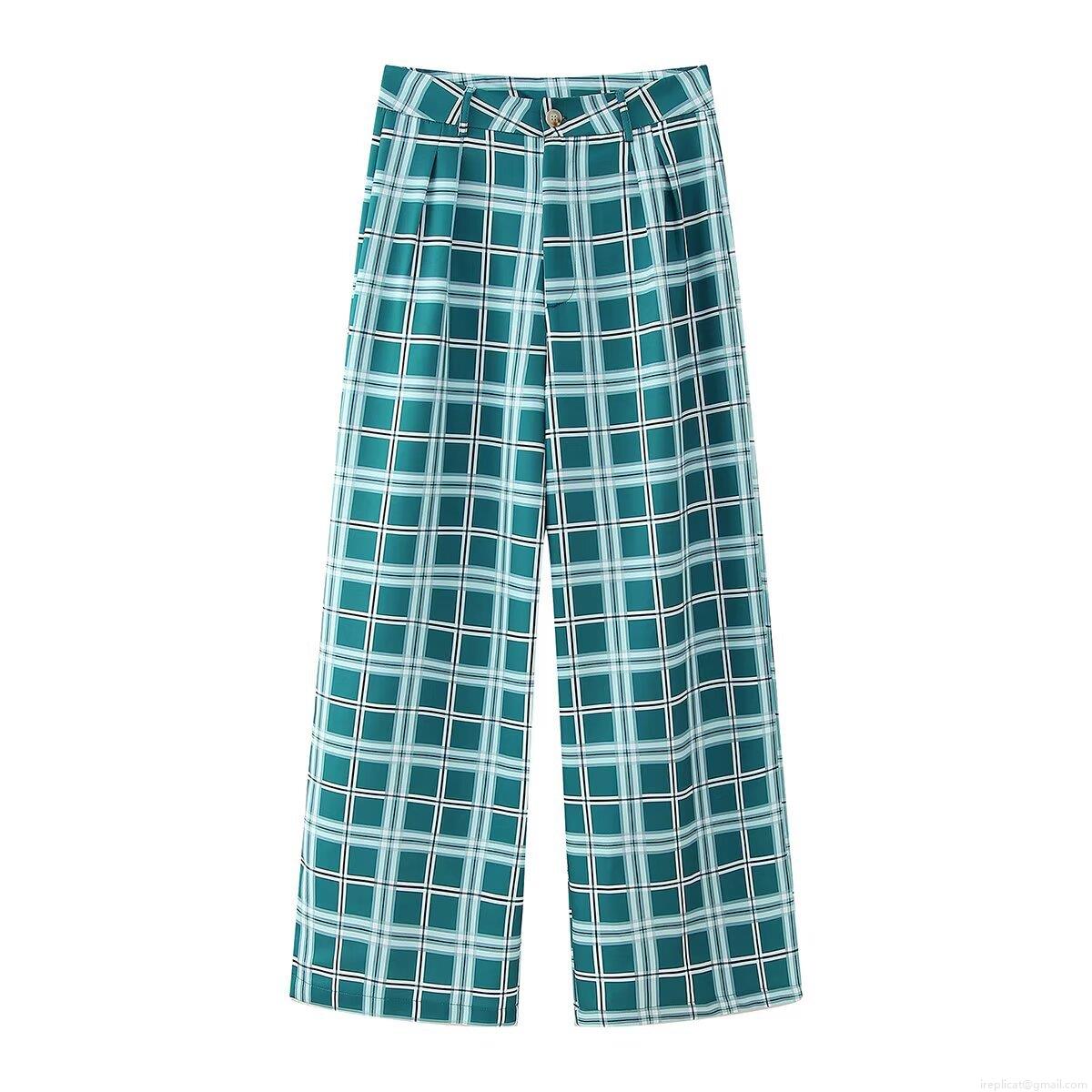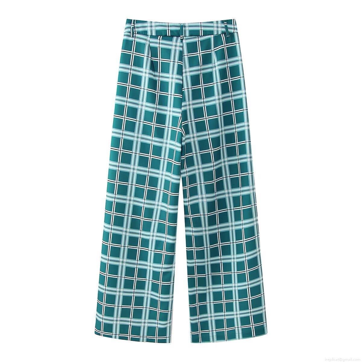 • Women Checkered Plaid Pants Suit Set 100% Polyester Woven Velvet Wavy Trim Peplum Jacket And High Waist Wide Leg Trousers European Street Style Office Commute Wear
