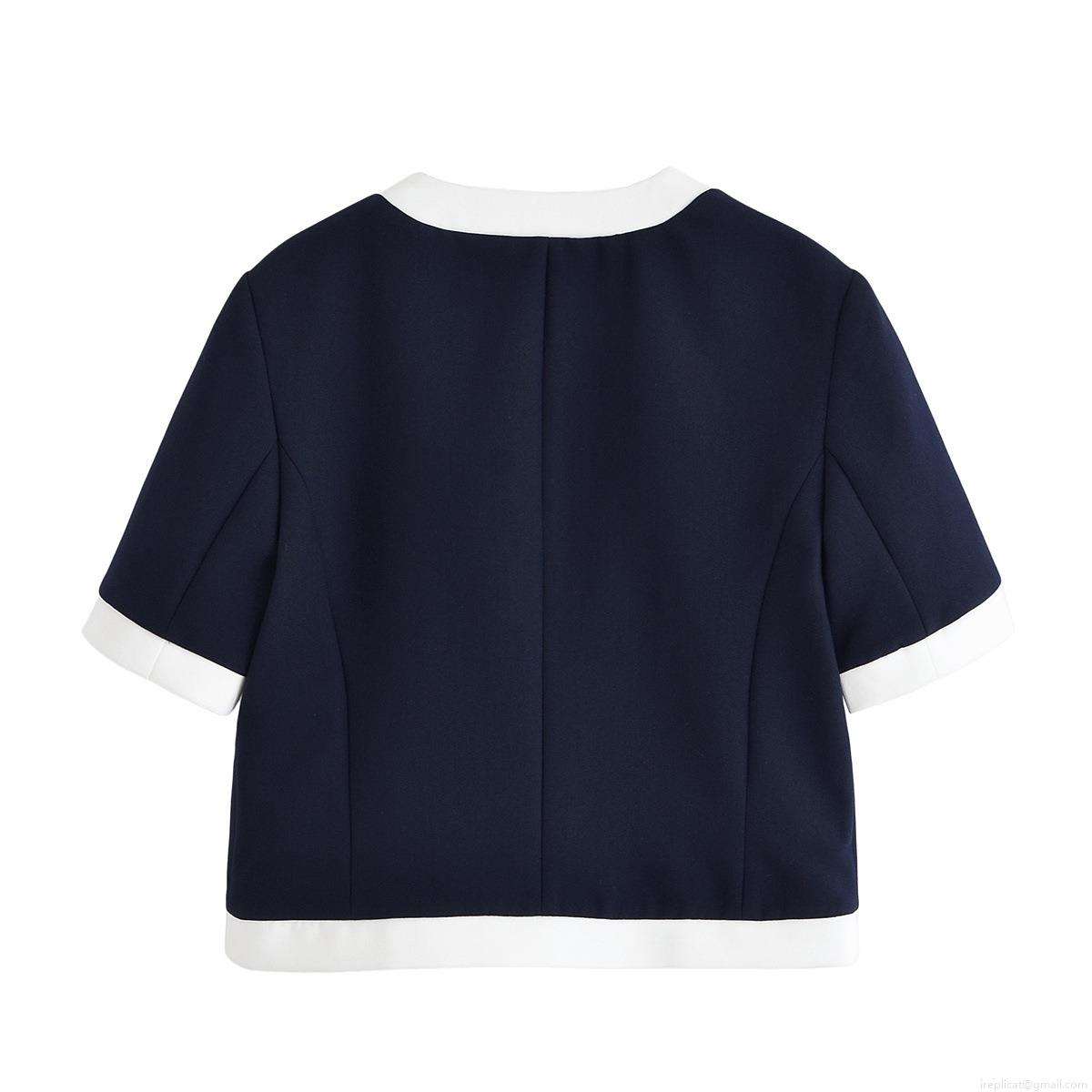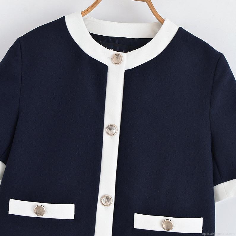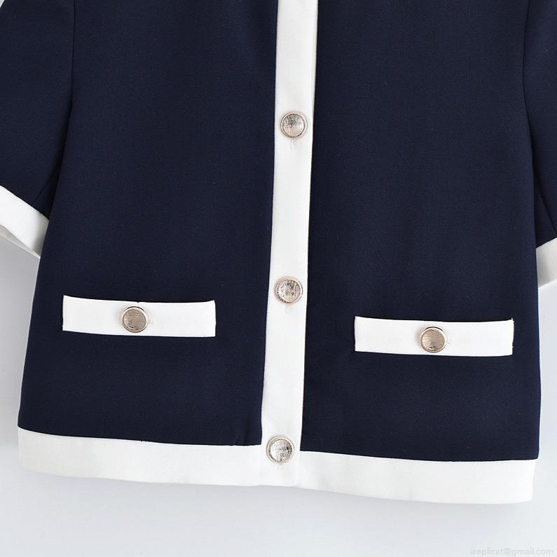 • Women Chic Contrast Trim Short Sleeve Round Neck Blazer And Straight Leg Pants Two Piece Set Business Casual Office Suit With Metal Buttons