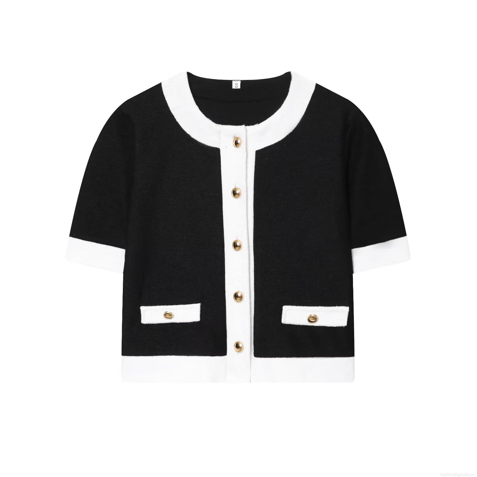 • Women Contrast Color Tweed Knit Two Piece Set Contrast Trim Short Sleeve Cardigan And High Waist Wide Leg Pants Streetwear Street Style Set For Women