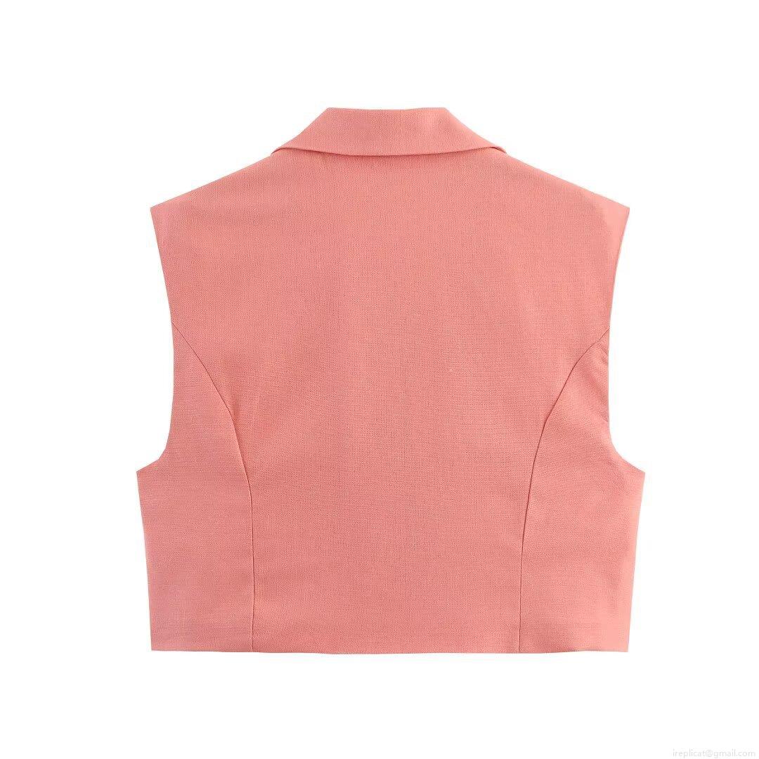 • Women Coral Pink 2 Piece Set Sleeveless Lapel Vest Top And High Waist Cropped Wide Leg Pants Set With Crocodile Texture Belt Casual Summer Streetwear Outfit