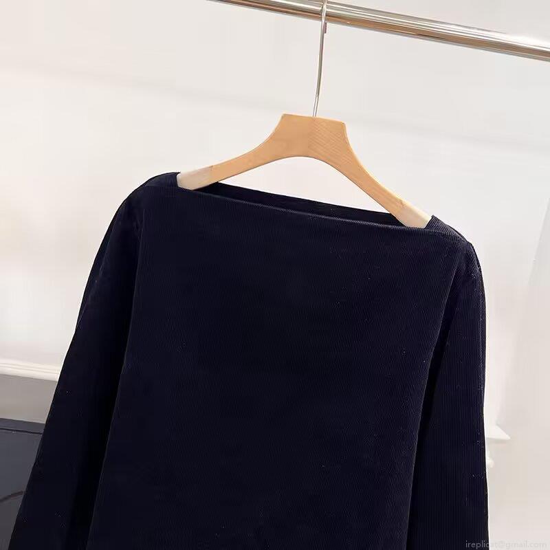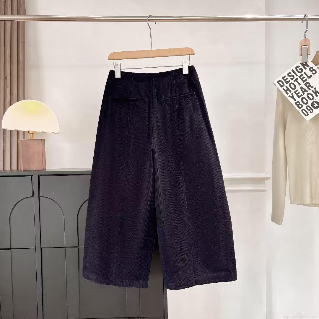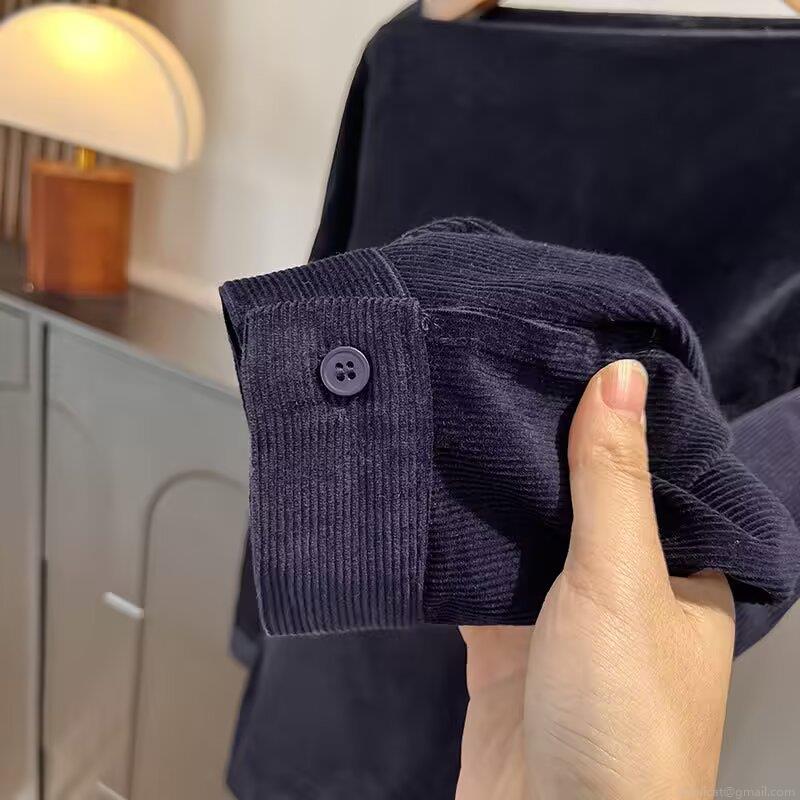• Women Corduroy Set Casual Boat Neck Long Sleeve Top High Waist Wide Leg Long Trousers Solid Color Retro Autumn Winter Fashion Minimalist Loose Clothing