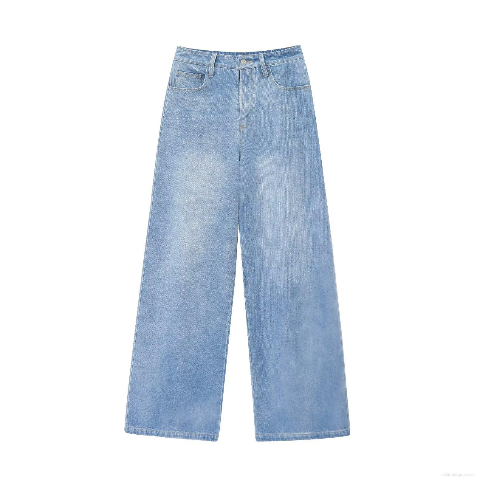 • Women Denim Two Piece Set V Neck Sleeveless Button Vest With Belt And High Waist Wide Leg Long Pants Light Blue Streetwear Casual Outfit
