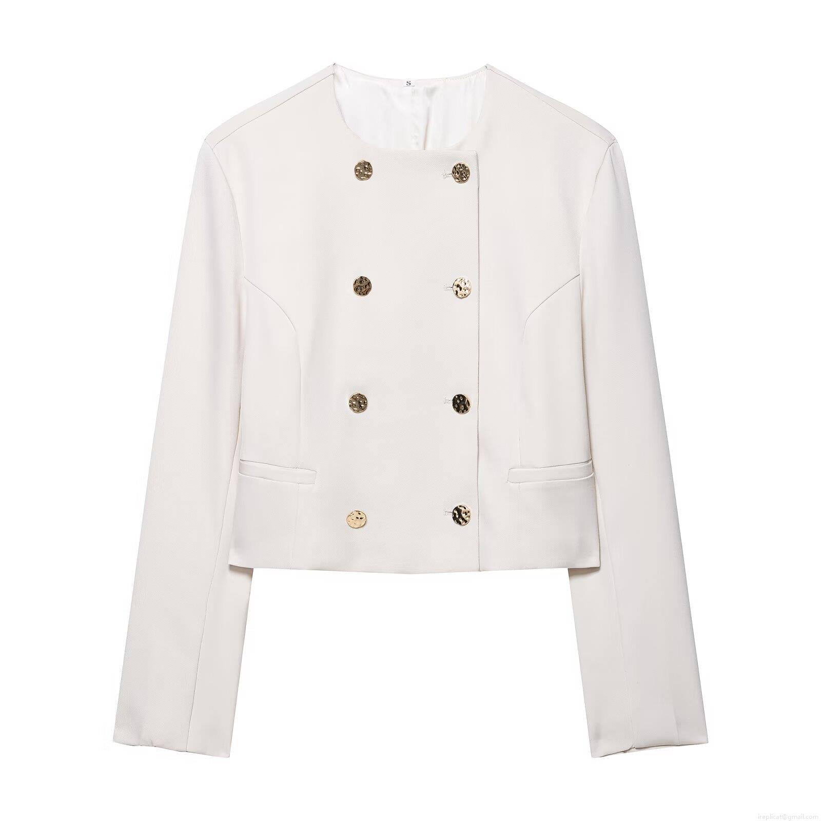 Solid Color, Splice, Pocket, Metal Chain, Double-breasted, Gold Embossed Buttons