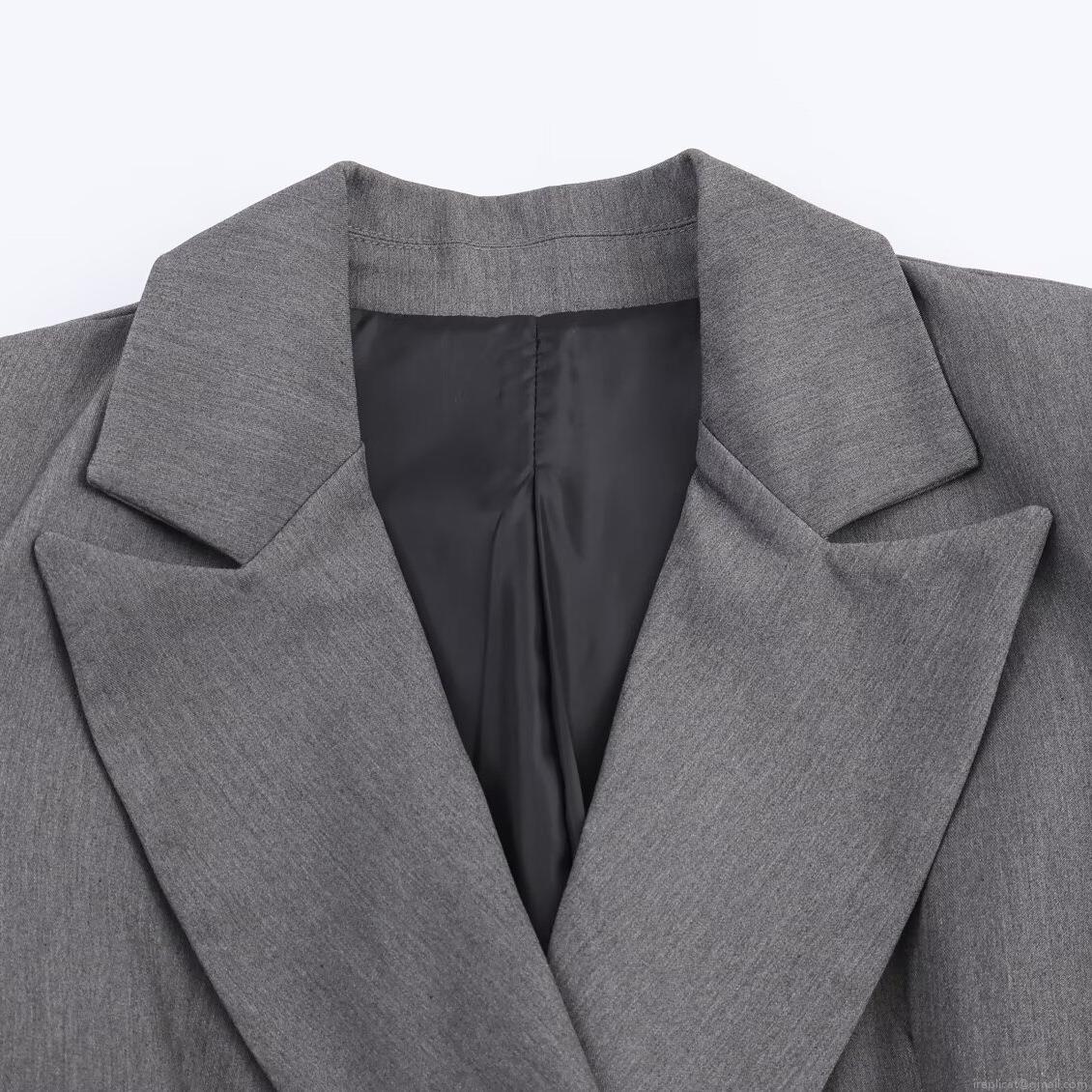 Women Elegant Grey Double Breasted Blazer and Straight Leg Pants Set with Belt Professional Business Suit Office Commute Wear Polyester Spandex Two Piece Outfit