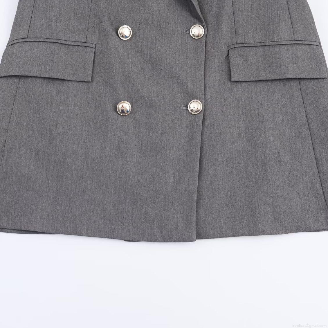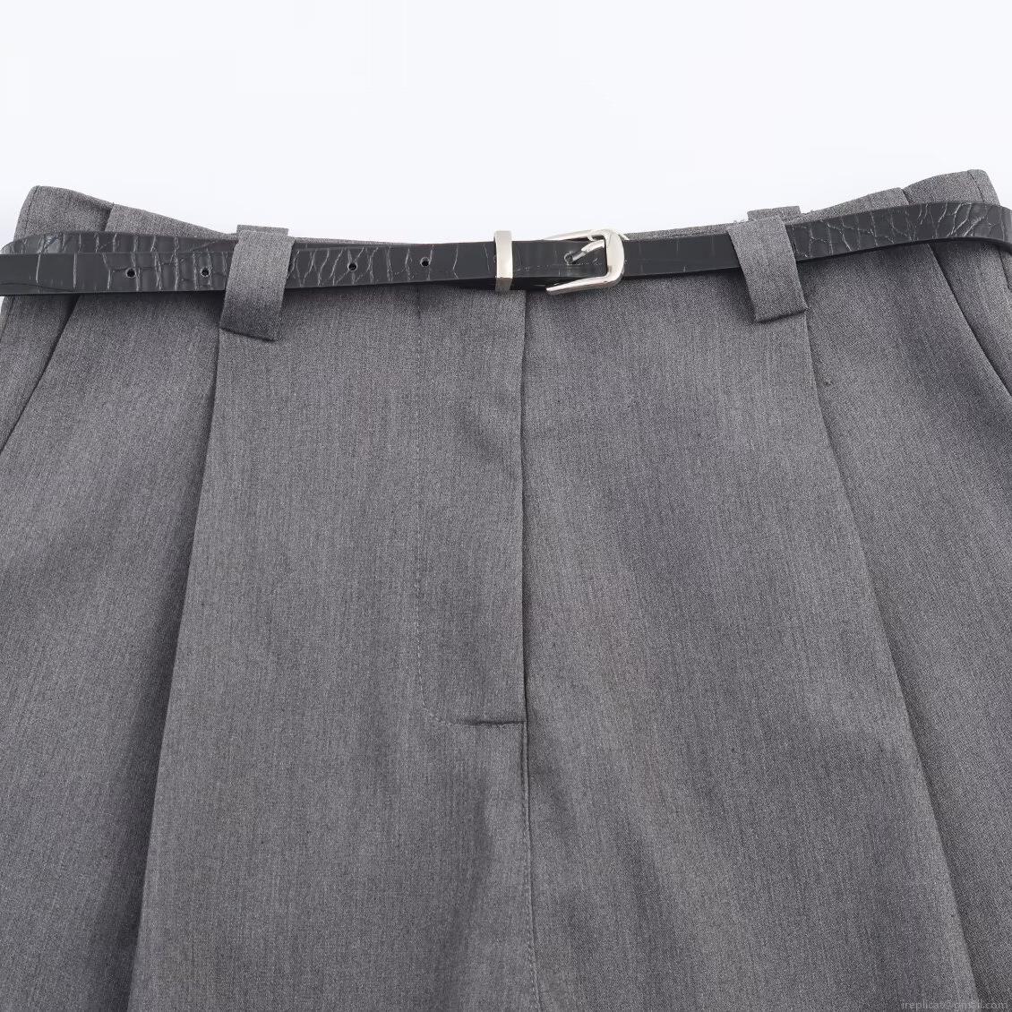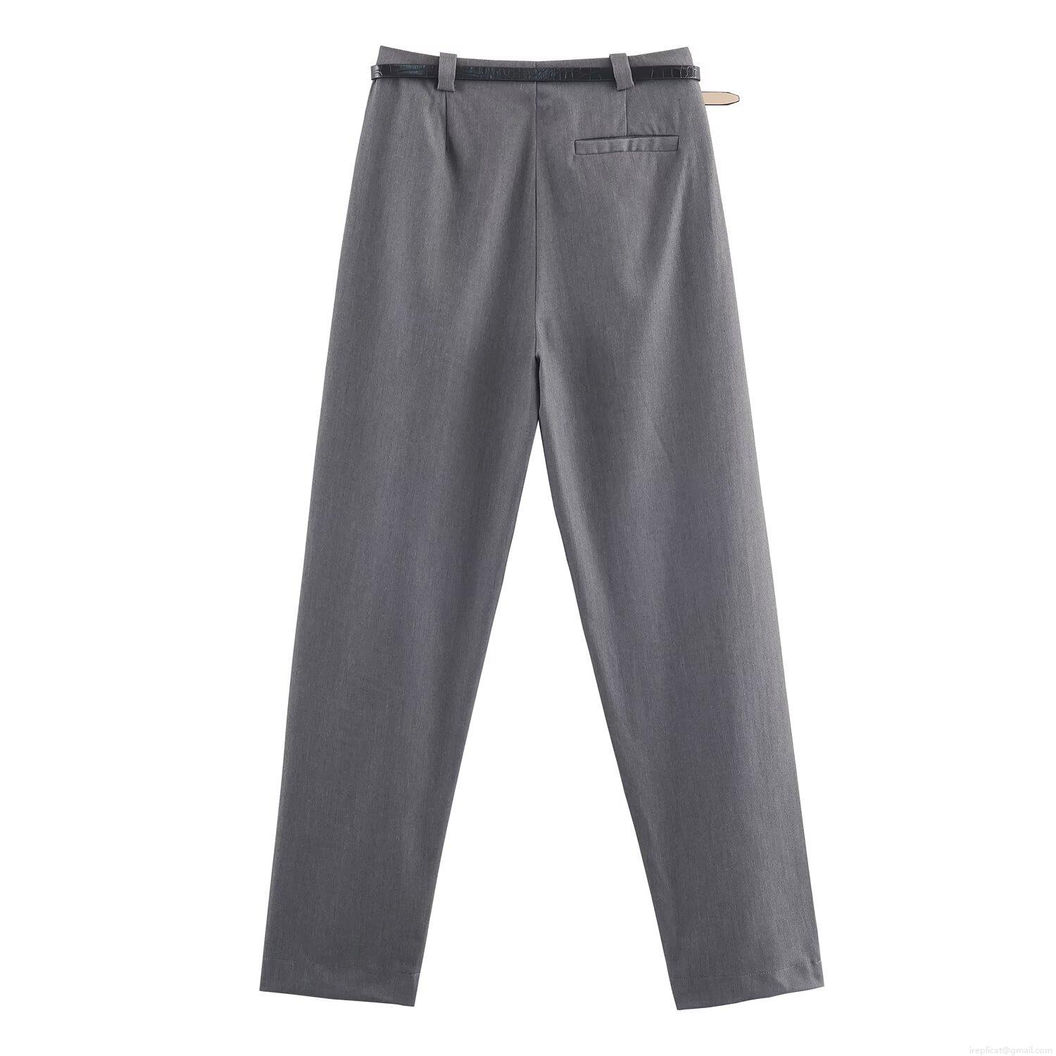 • Women Elegant Grey Double Breasted Blazer and Straight Leg Pants Set with Belt Professional Business Suit Office Commute Wear Polyester Spandex Two Piece Outfit