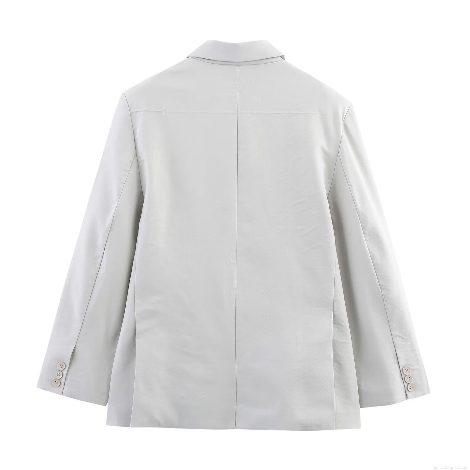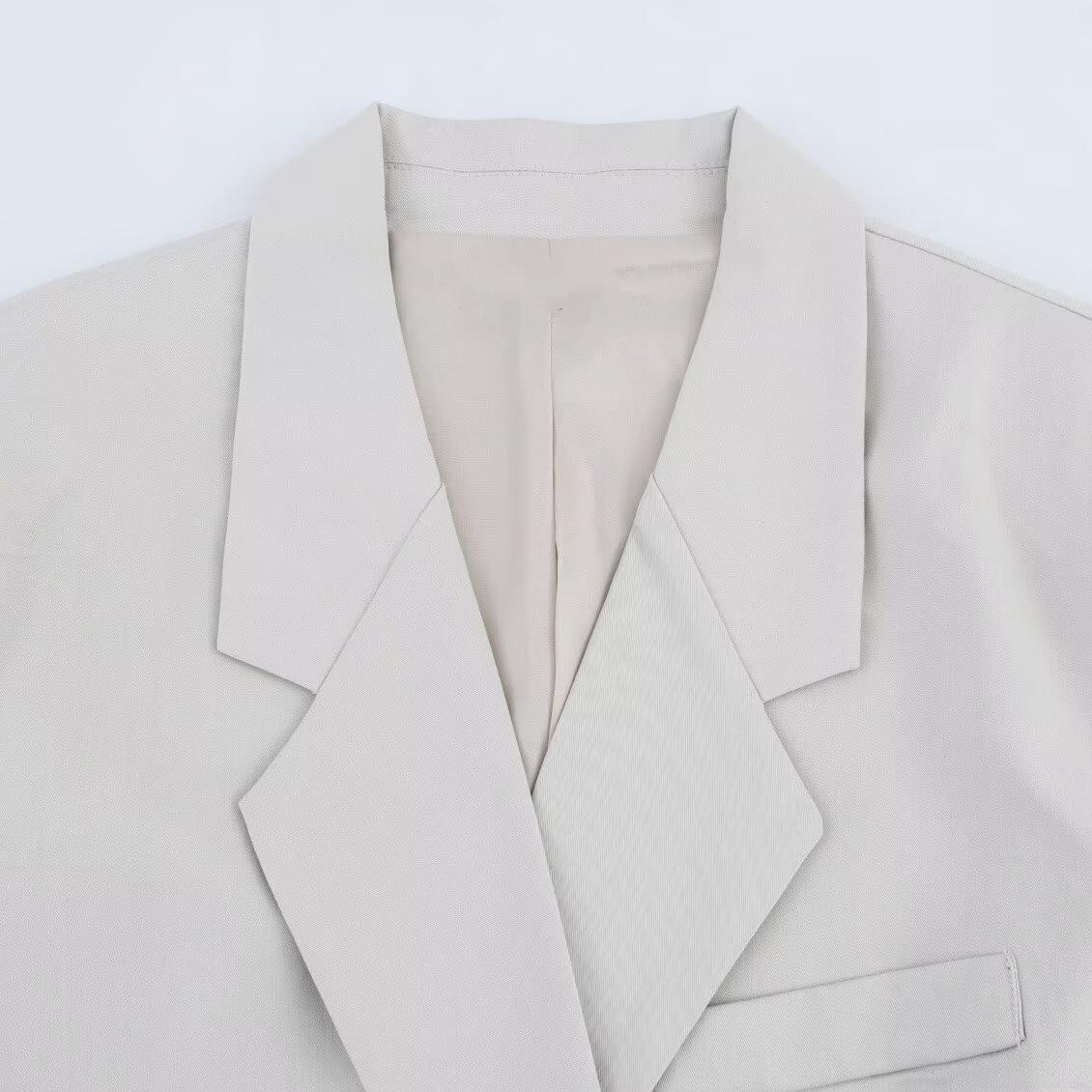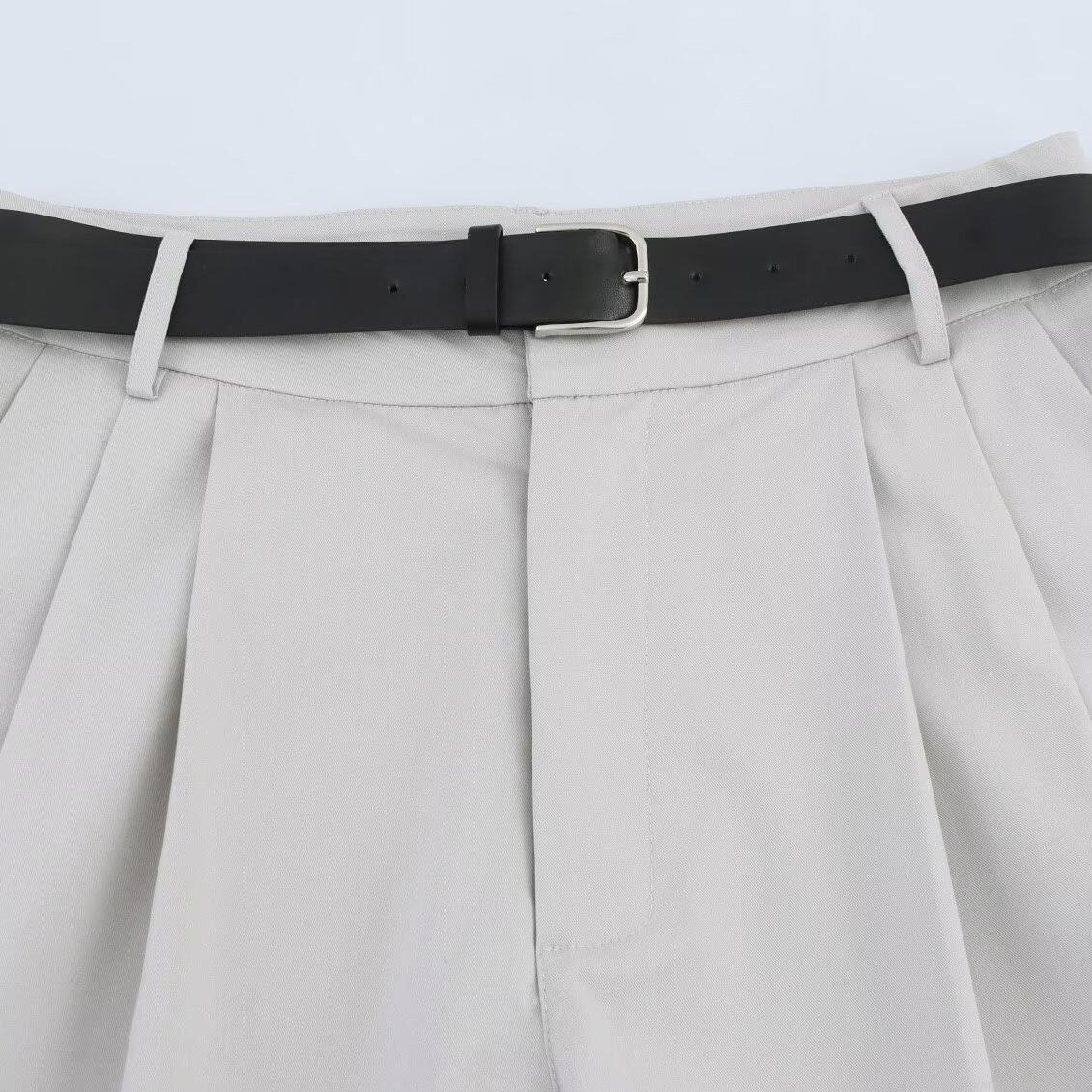 • Women Elegant Light Grey Suit Set Professional Notch Lapel Loose Blazer And High Waist Wide Leg Trousers With Belt Casual Woven Office Commuter Outfit