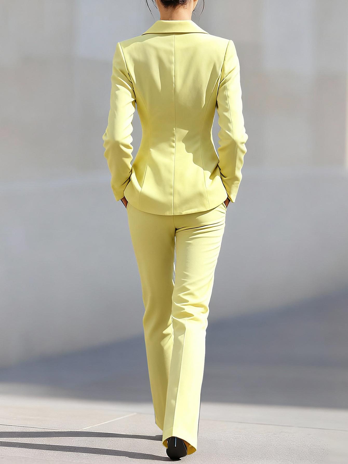 Women Elegant Light Yellow 2-Piece Blazer Suit Set Slim Fit Notched Lapel Single Button Blazer with Straight Leg Pants Office Business Commuting Lady Outfit