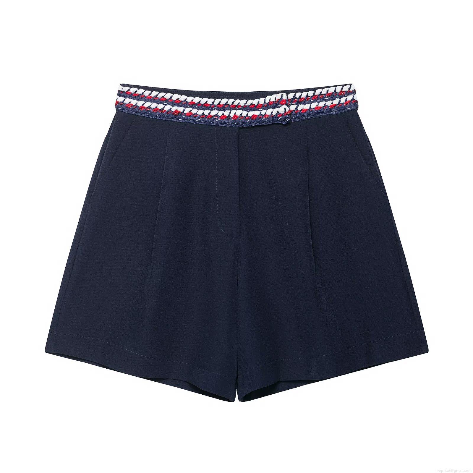 Solid Color, High-waisted, Gold Buttons, Red White And Blue Woven Lace, Heavy Industry Drill