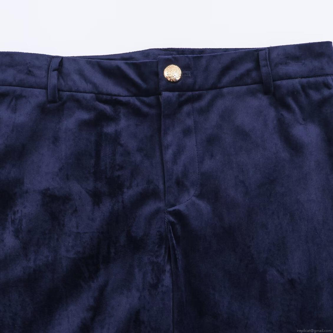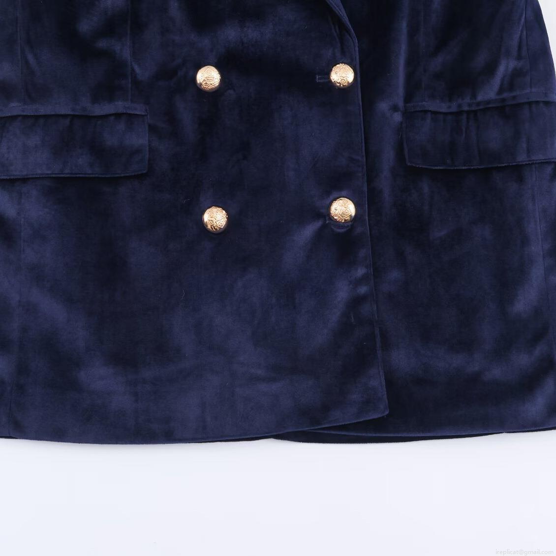 • Women Elegant Velvet Suit Set Double Breasted Blazer Gold Buttons High Waist Wide Leg Pants For Office Party Commute Navy Blue Two Piece Outfit