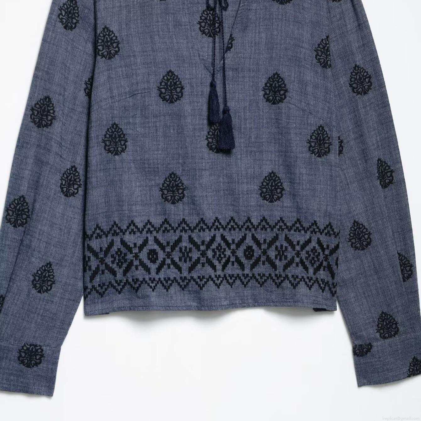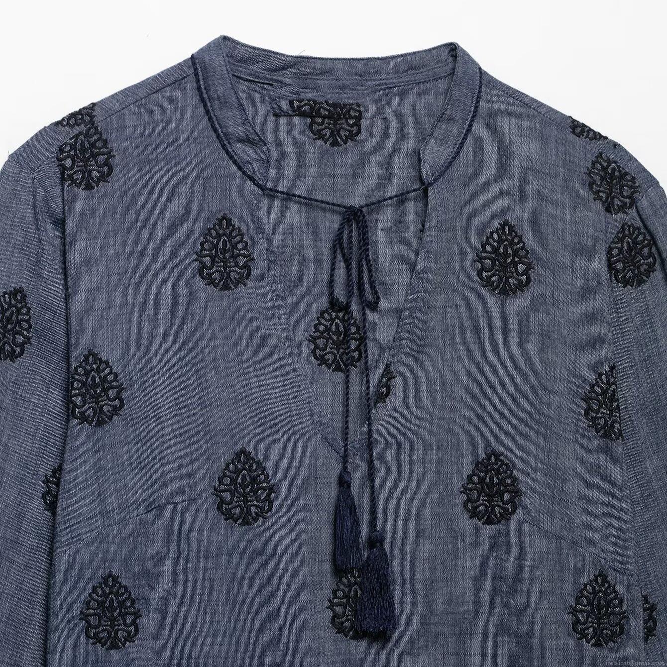 • Women Ethnic Embroidered Two-Piece Set Vintage Paisley V Neck Tassel Tie Top Wide Leg Pants Casual Cotton Blend Loose Long Sleeve Suit For Ladies
