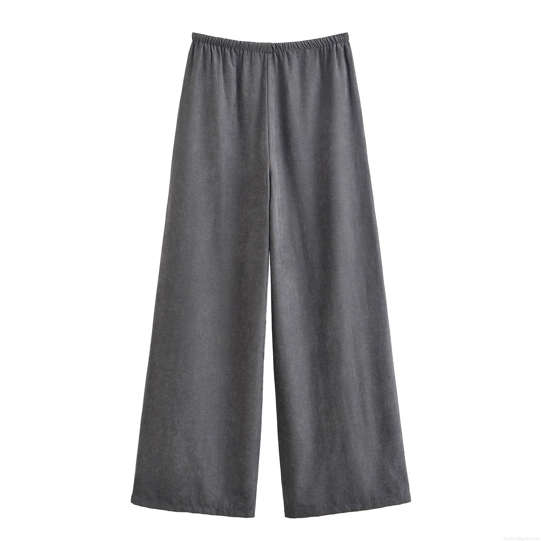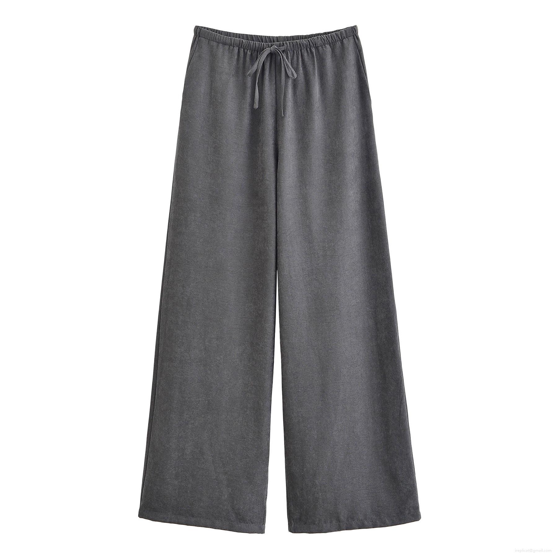 Women European Style Two Piece Set Suede Texture Short Zipper Jacket And High Waist Wide Leg Drawstring Pants Casual Streetwear 2025 Autumn Outfits