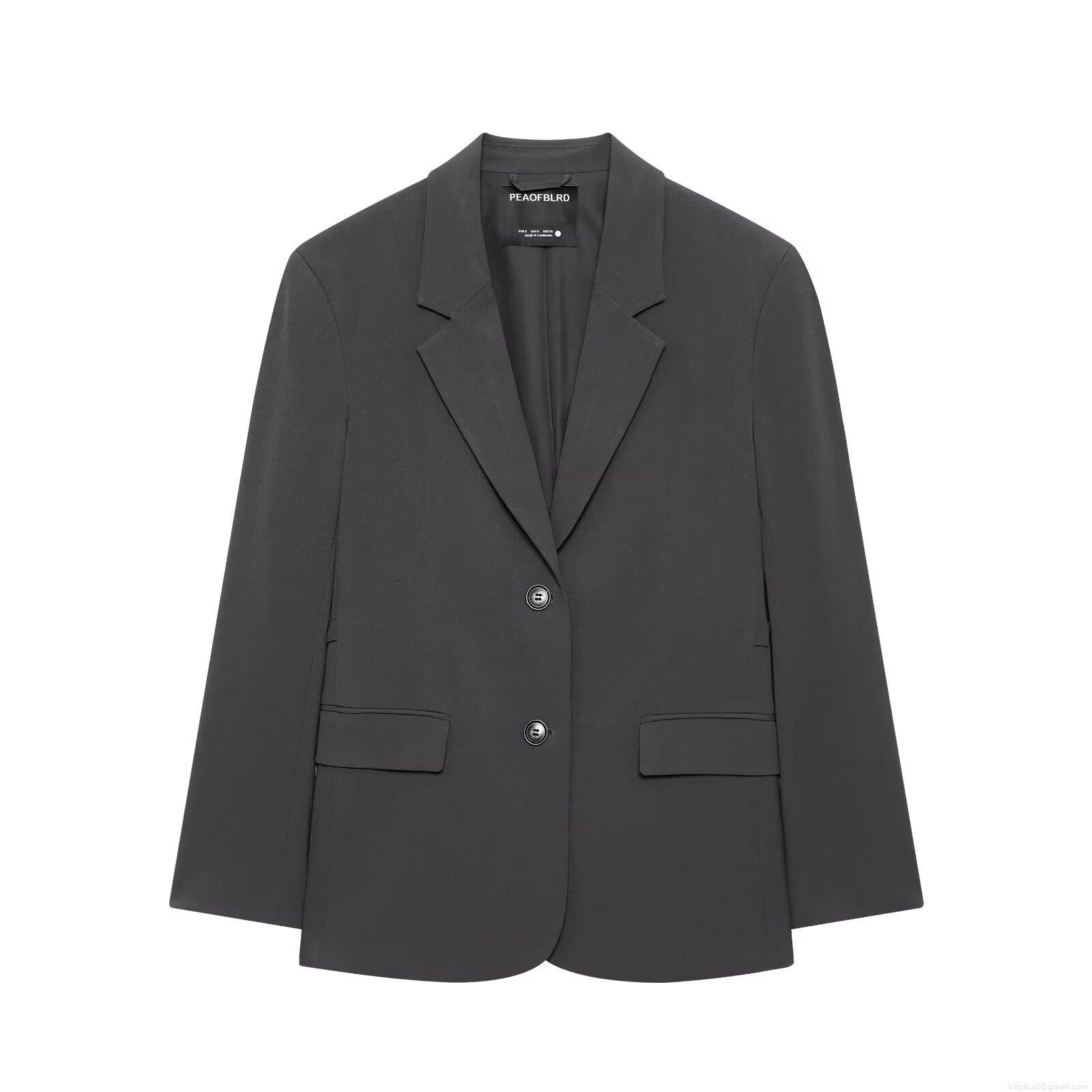 • Women Fashion 3-Piece Blazer Set Asymmetric Wrap Skirt Trousers Suits Office Lady Casual Long Sleeve Solid Color Polyester Outfits Two Button Grey Black Sets