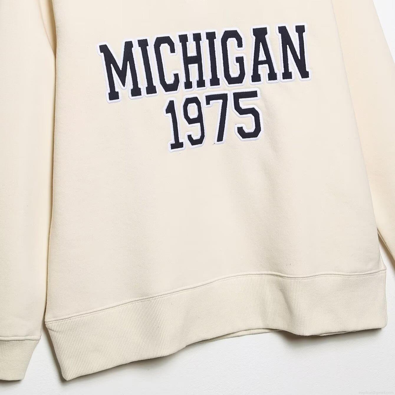 Women Fashion Casual Two Piece Set Fleece Lined Michigan 1975 Letter Print Polo Sweatshirt And Joggers Sport Pants Suit For Winter Daily Wear