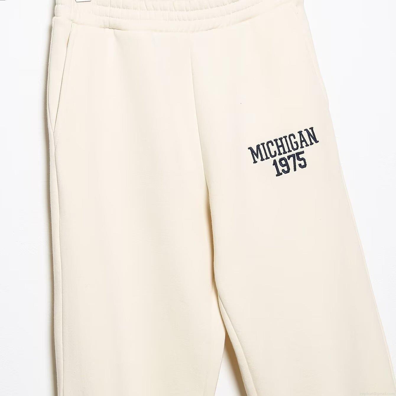 • Women Fashion Casual Two Piece Set Fleece Lined Michigan 1975 Letter Print Polo Sweatshirt And Joggers Sport Pants Suit For Winter Daily Wear