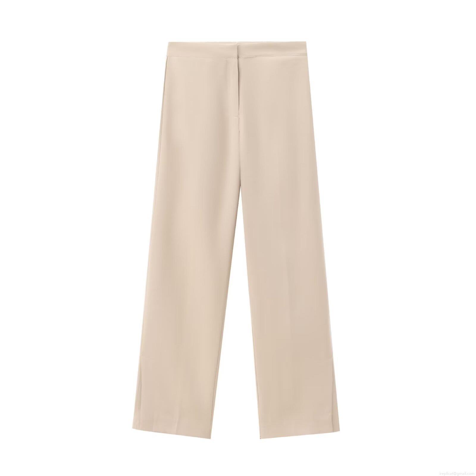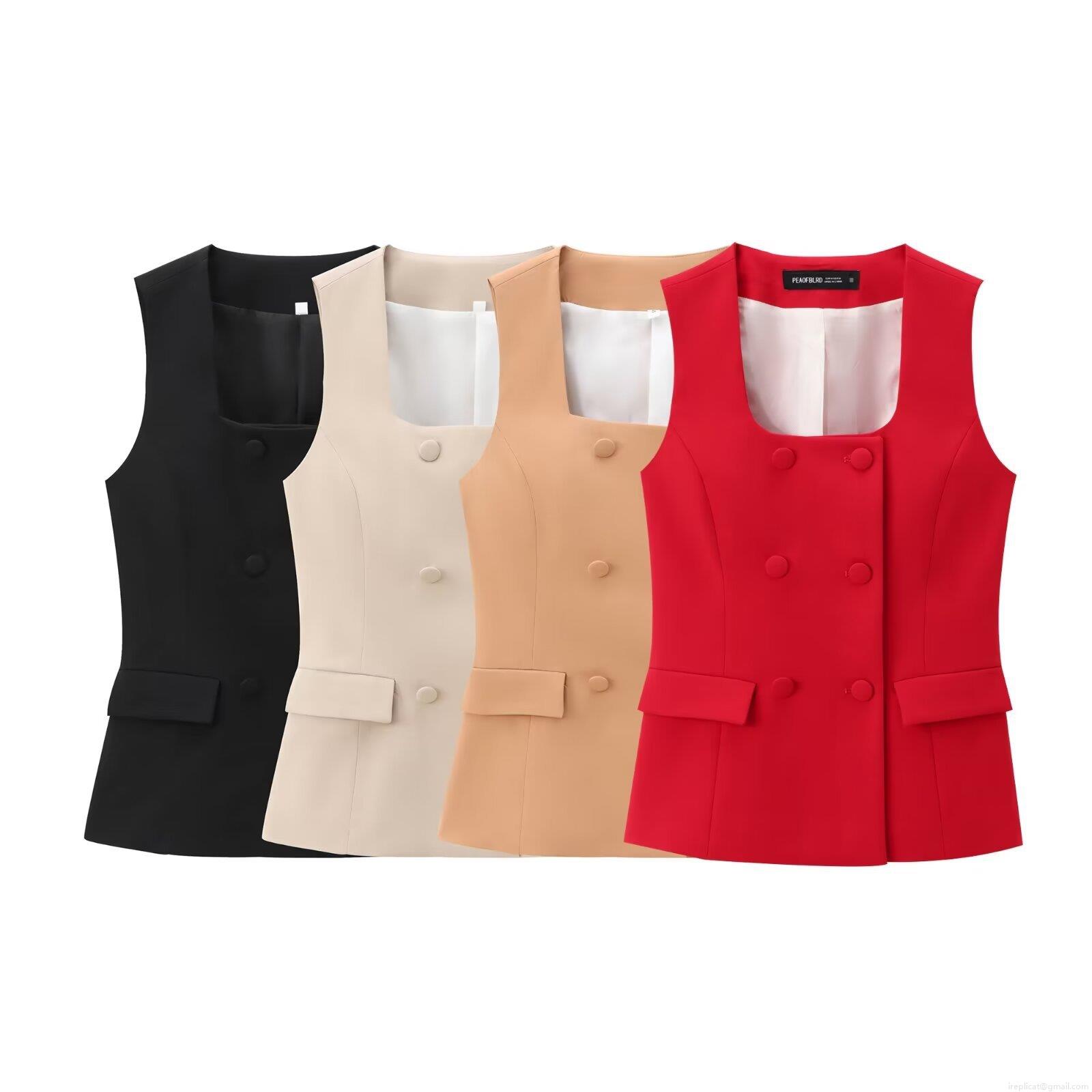 • Women Fashion Double Breasted Square Neck Vest And High Waist Wide Leg Long Pants Set Elegant Solid Color Office Commuter Two Piece Outfits For Autumn Spring