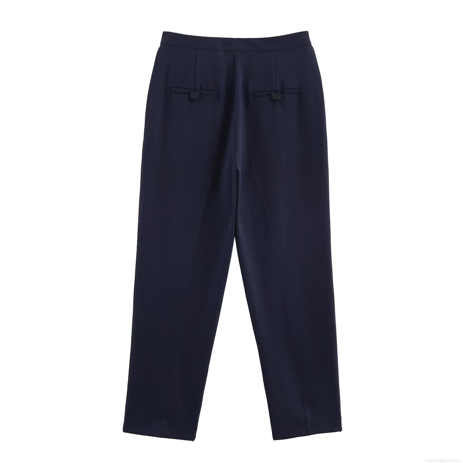 • Women Fashion Navy Blue V Neck Double Breasted Blazer And Straight Leg Pants Suit Set Elegant Business Commuting Office Lady Workwear Two Piece Set