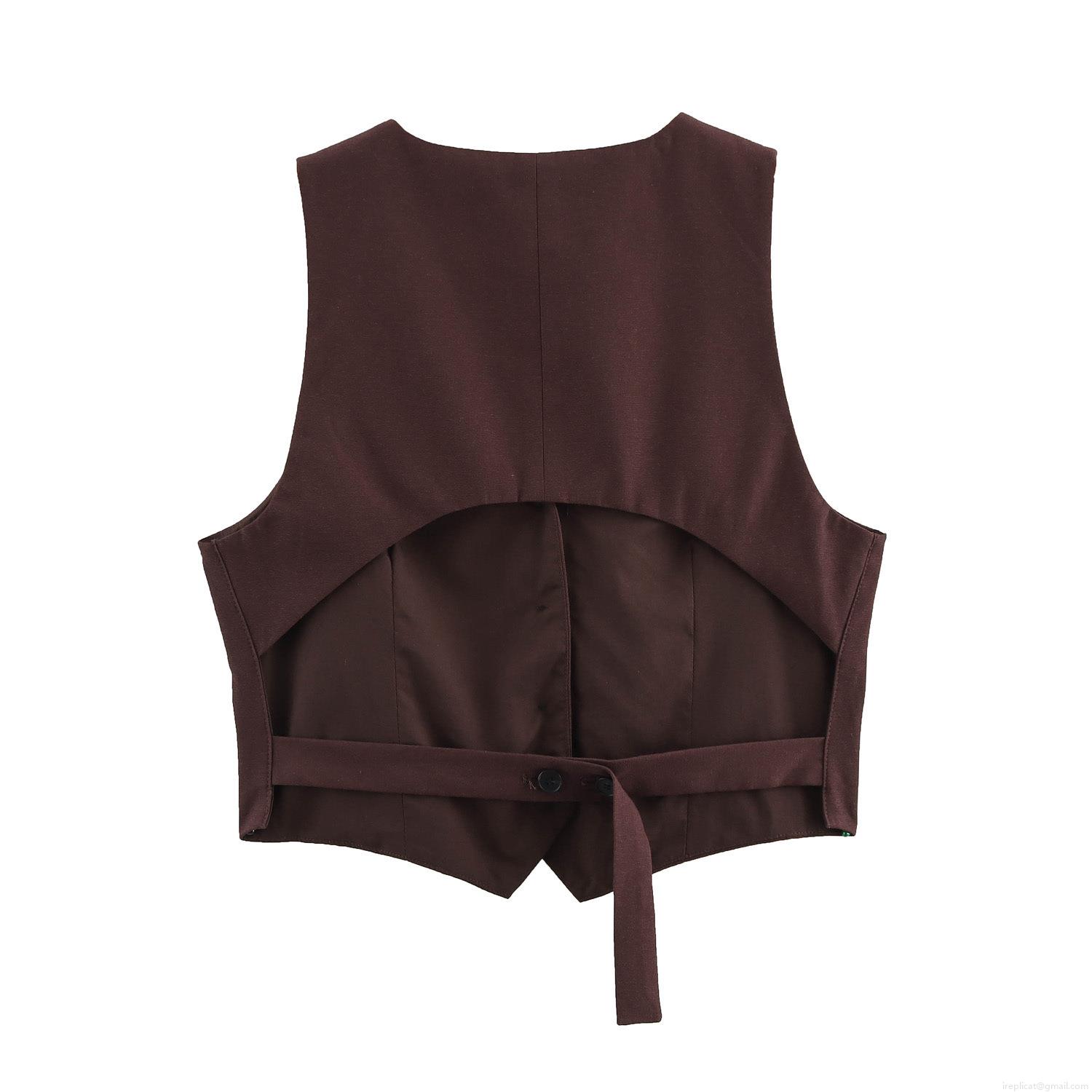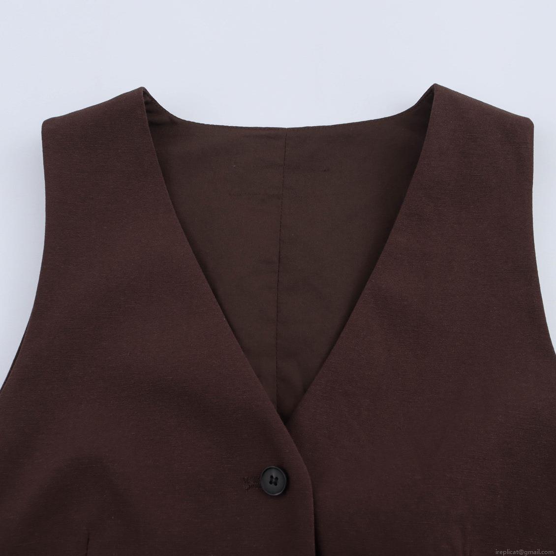 • Women Fashion Sleeveless V Neck Backless Vest And High Waist Wide Leg Pleated Pants Two Piece Set Elegant Office Commute Suit Solid Color