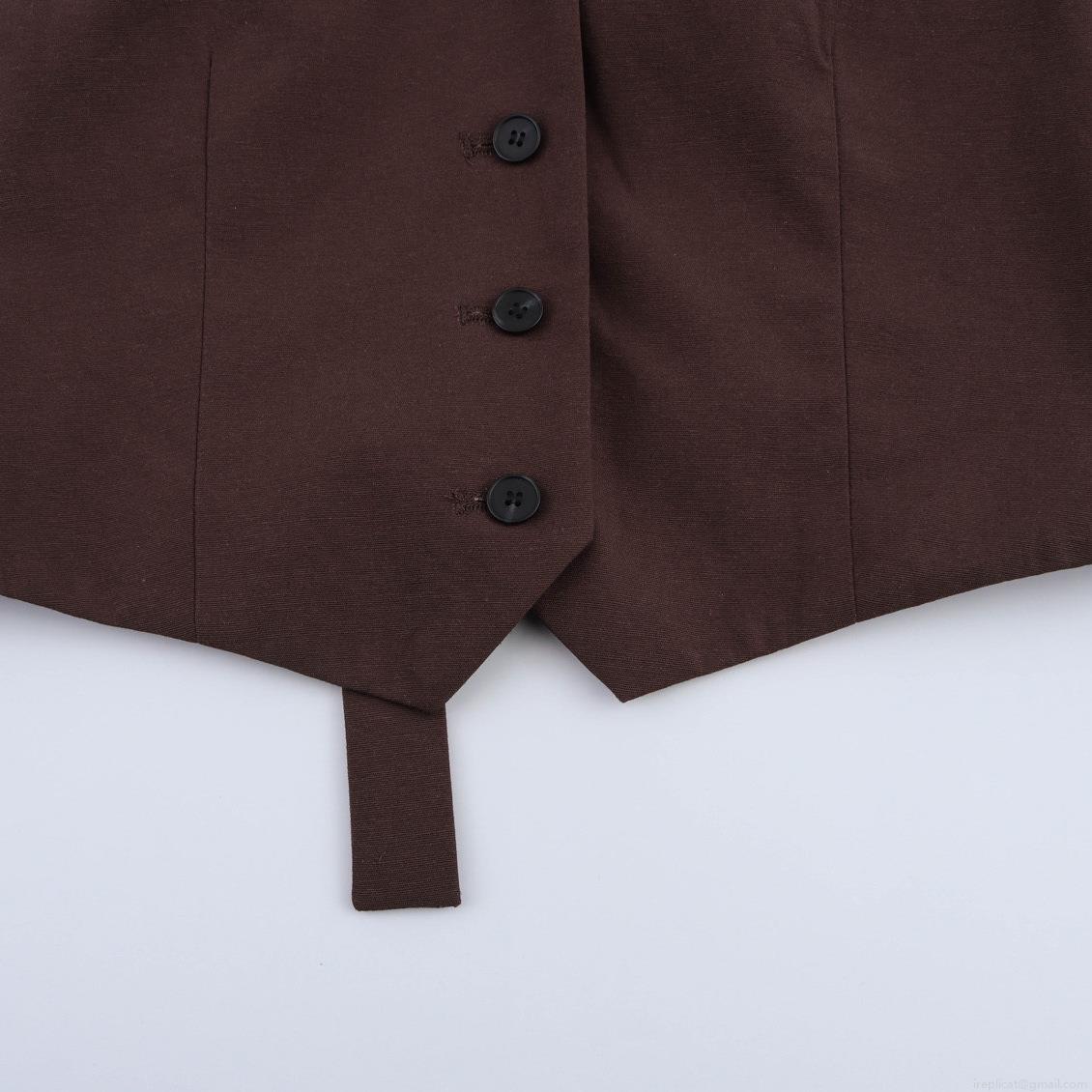 Solid Color, Pleats, V-neck, Backless, Single-breasted, High-waisted