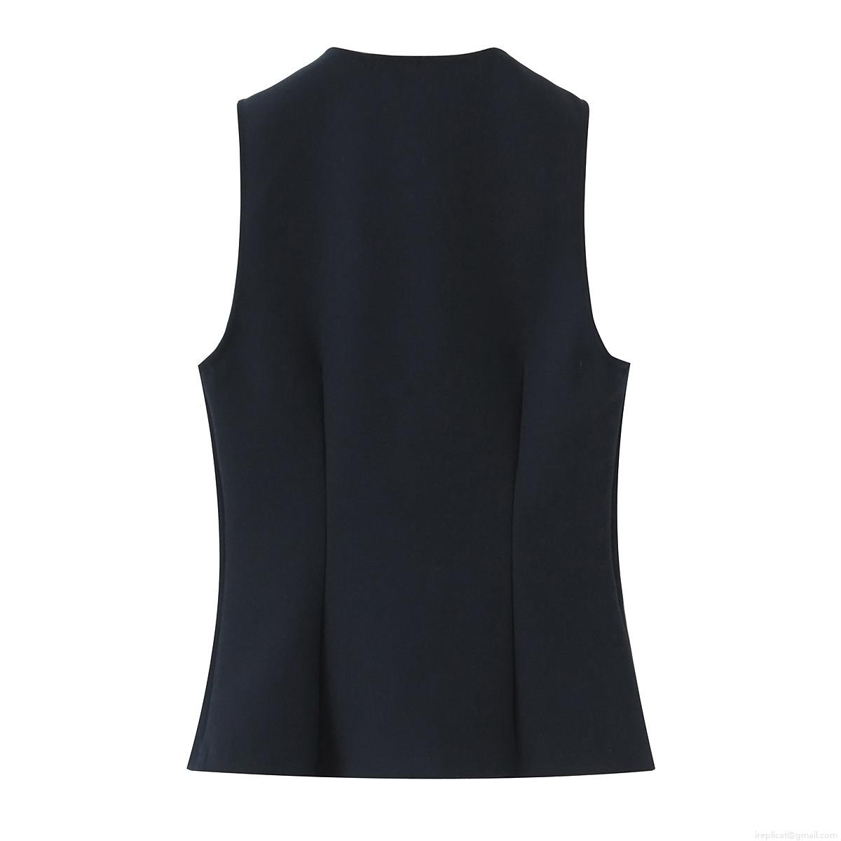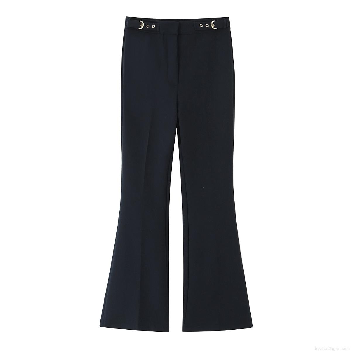• Women Fashion Two Piece Set Sleeveless V Neck Vest With Crescent Buckle High Waist Flare Pants Streetwear Solid Color Autumn Suit