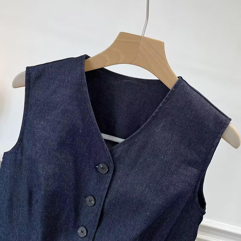 Solid Color, V-neck, Single-breasted, Wide-leg, High-waisted, Suit Vest