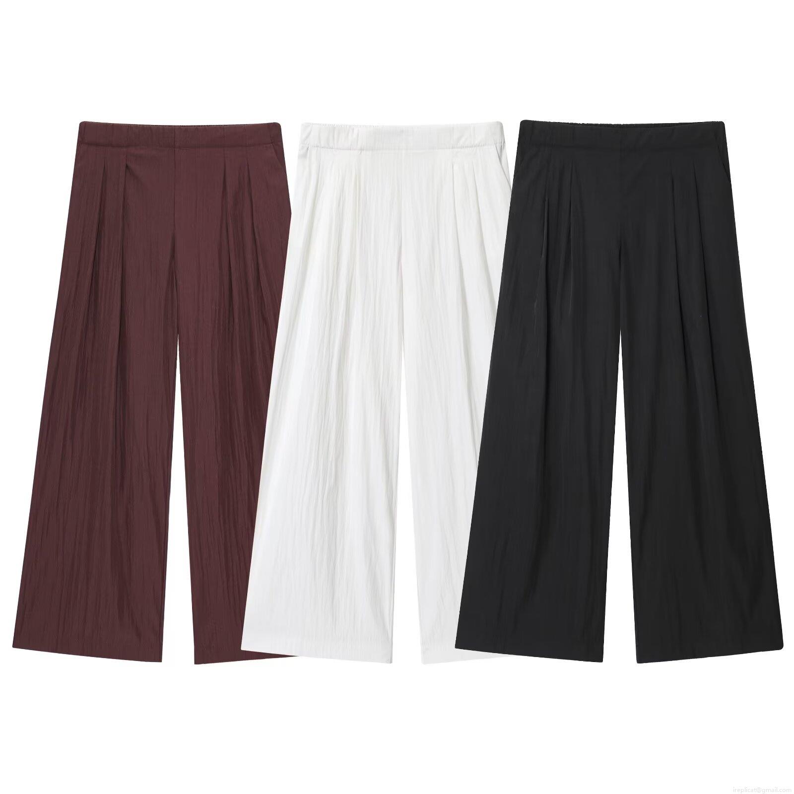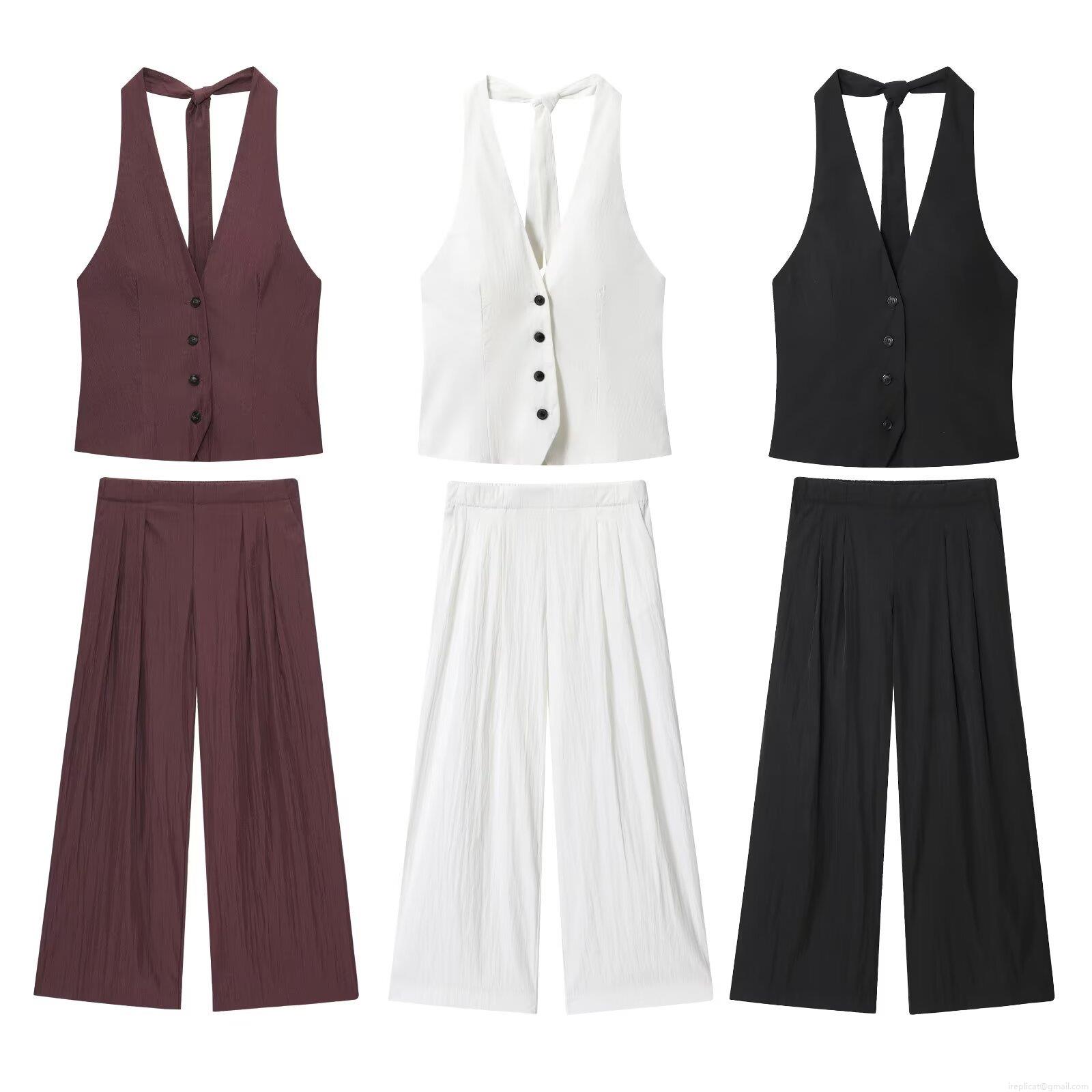 • Women Halter V-Neck Button Vest And Pleated Wide Leg Pants Two Piece Set Elegant Solid Color Sleeveless Summer Outfits Co-ord Suits