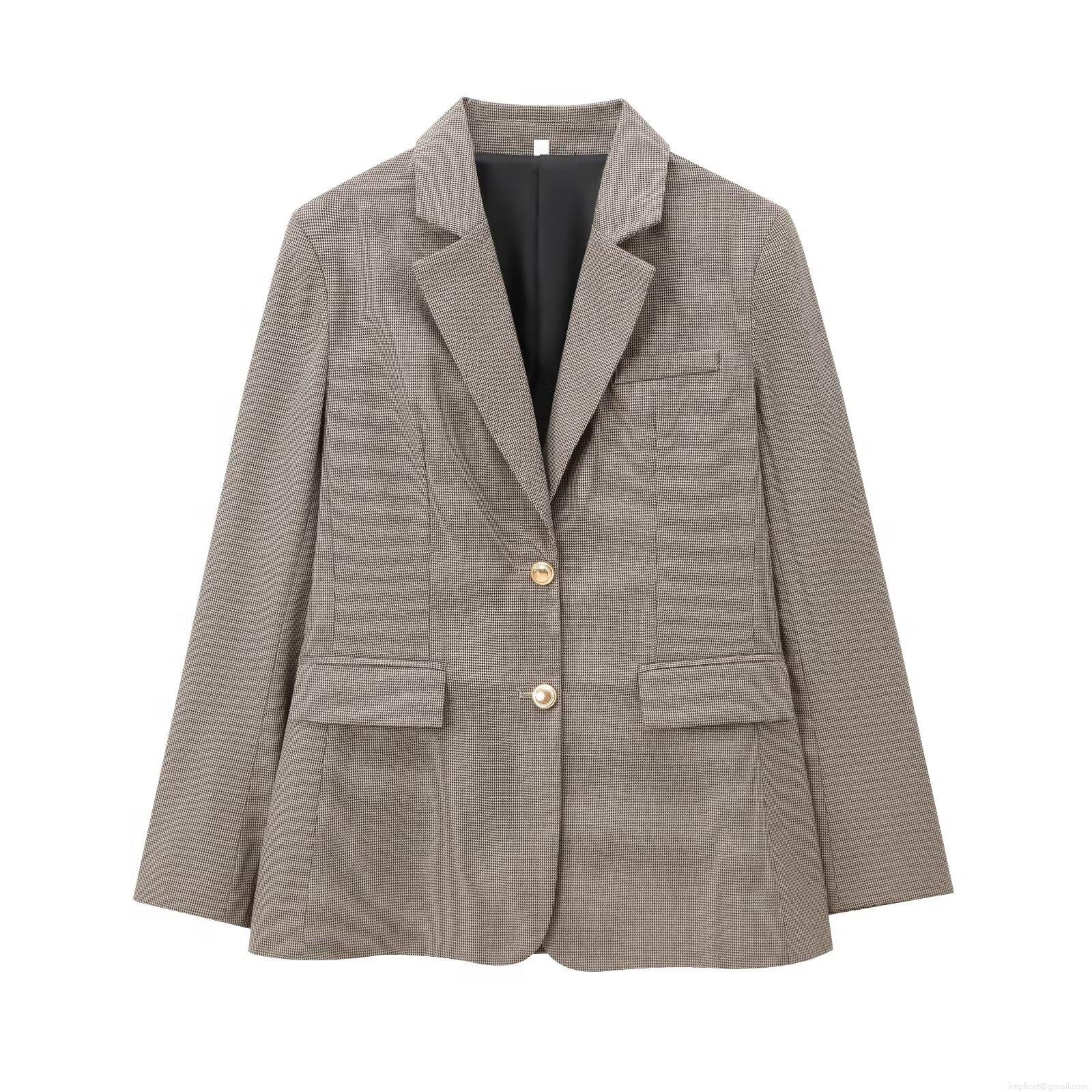 Houndstooth, Single-breasted, Metal Buttons, Flap Pocket, High-waisted Pleats