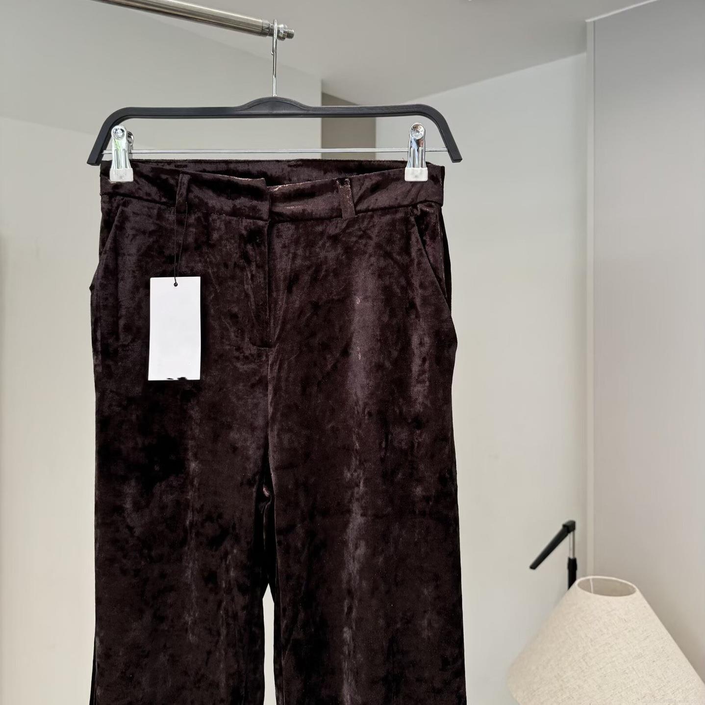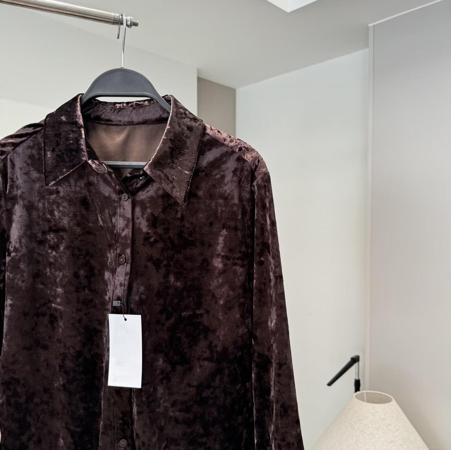 • Women Luxury Velvet Shirt and Straight Leg Pants Set Elegant Glossy Long Sleeve Button Down Blouse and High Waist Wide Leg Trousers Casual Two Piece Outfits