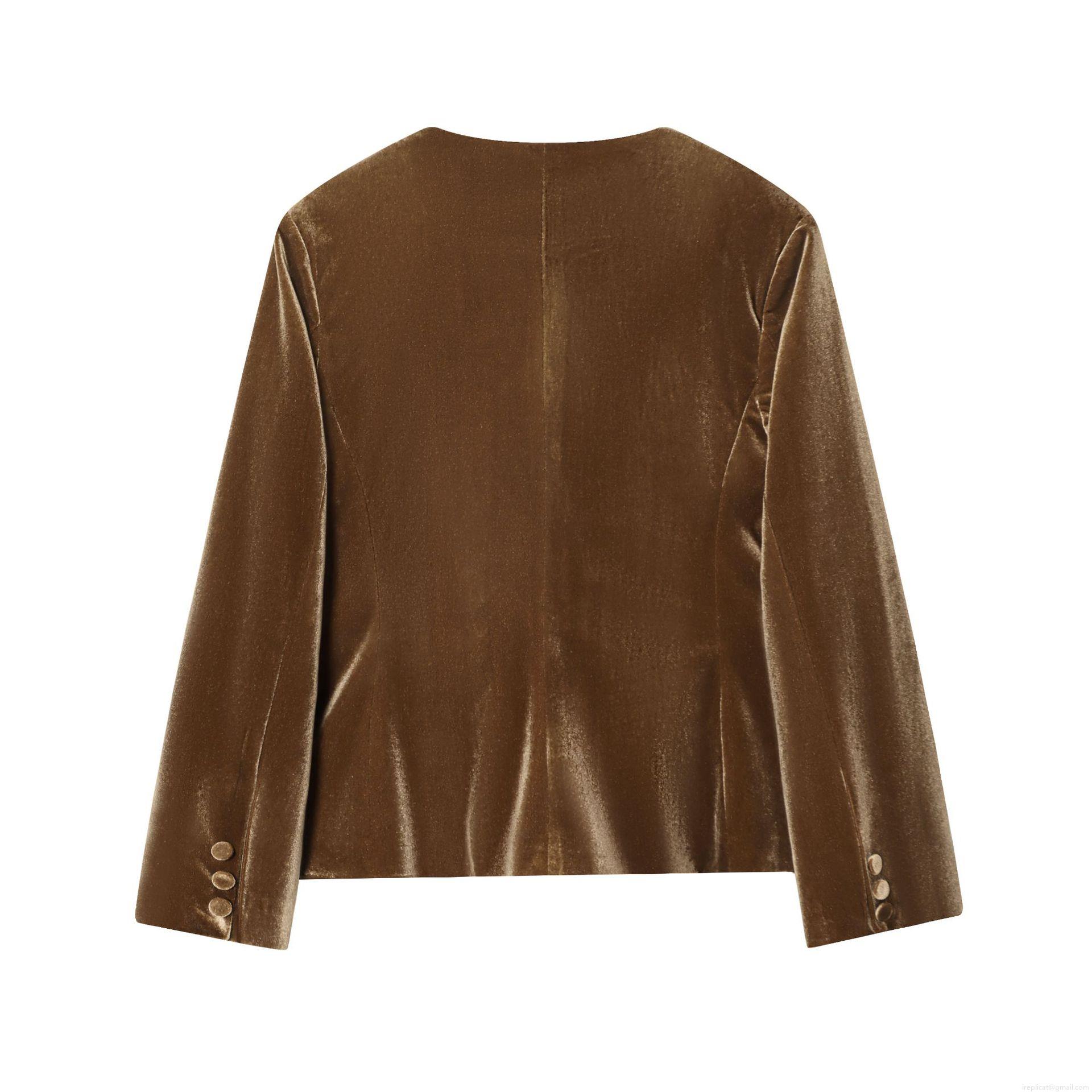 Women Luxury Velvet Suit Set 2 Piece Outfits Vintage V-Neck Single Button Blazer and High Waist Flare Pants Set Brown Bronze Casual Streetwear Clothing