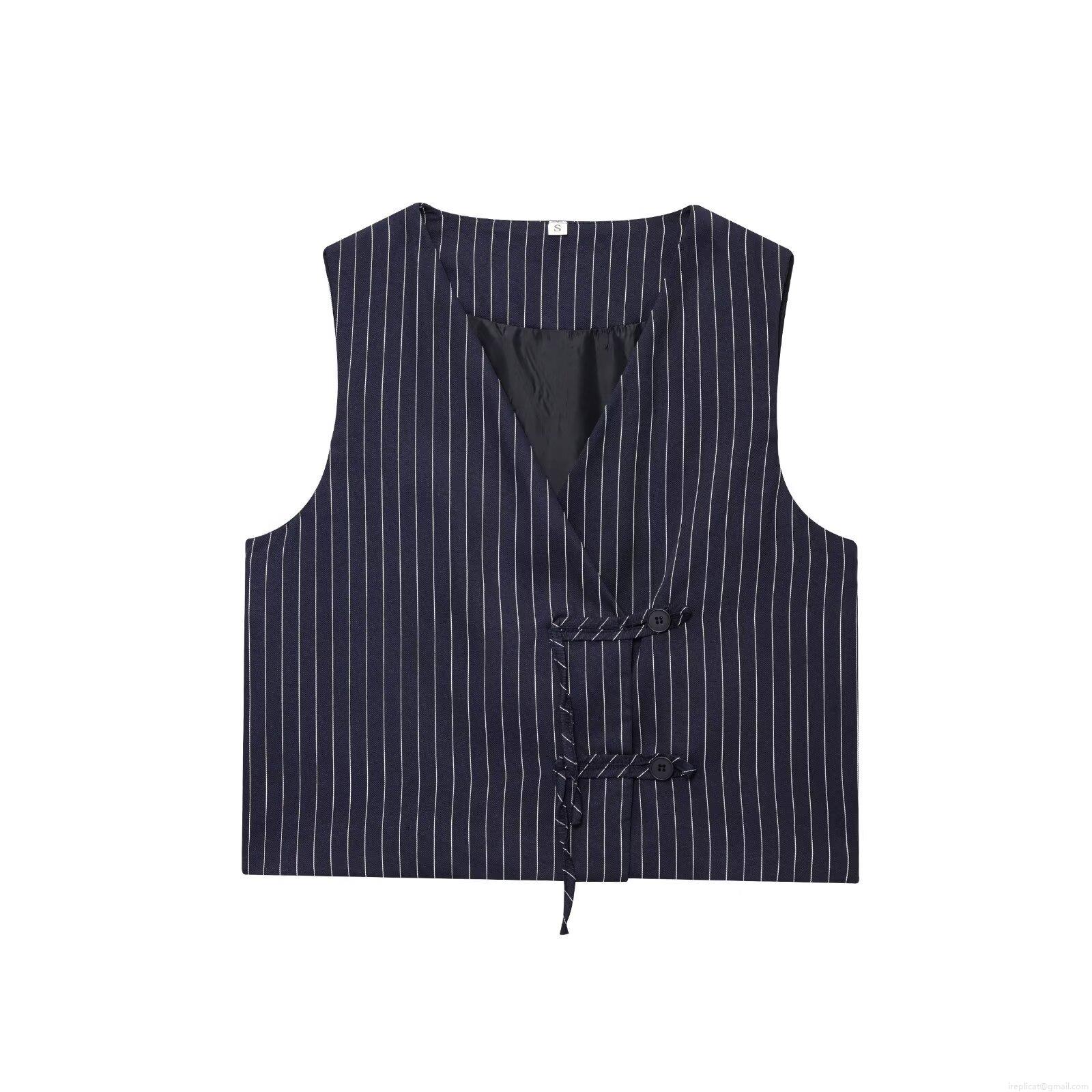 • Women Navy Blue Striped Linen Blend Two Piece Set V-Neck Sleeveless Wrap Top and Wide Leg Balloon Pants Casual Streetwear Outfit