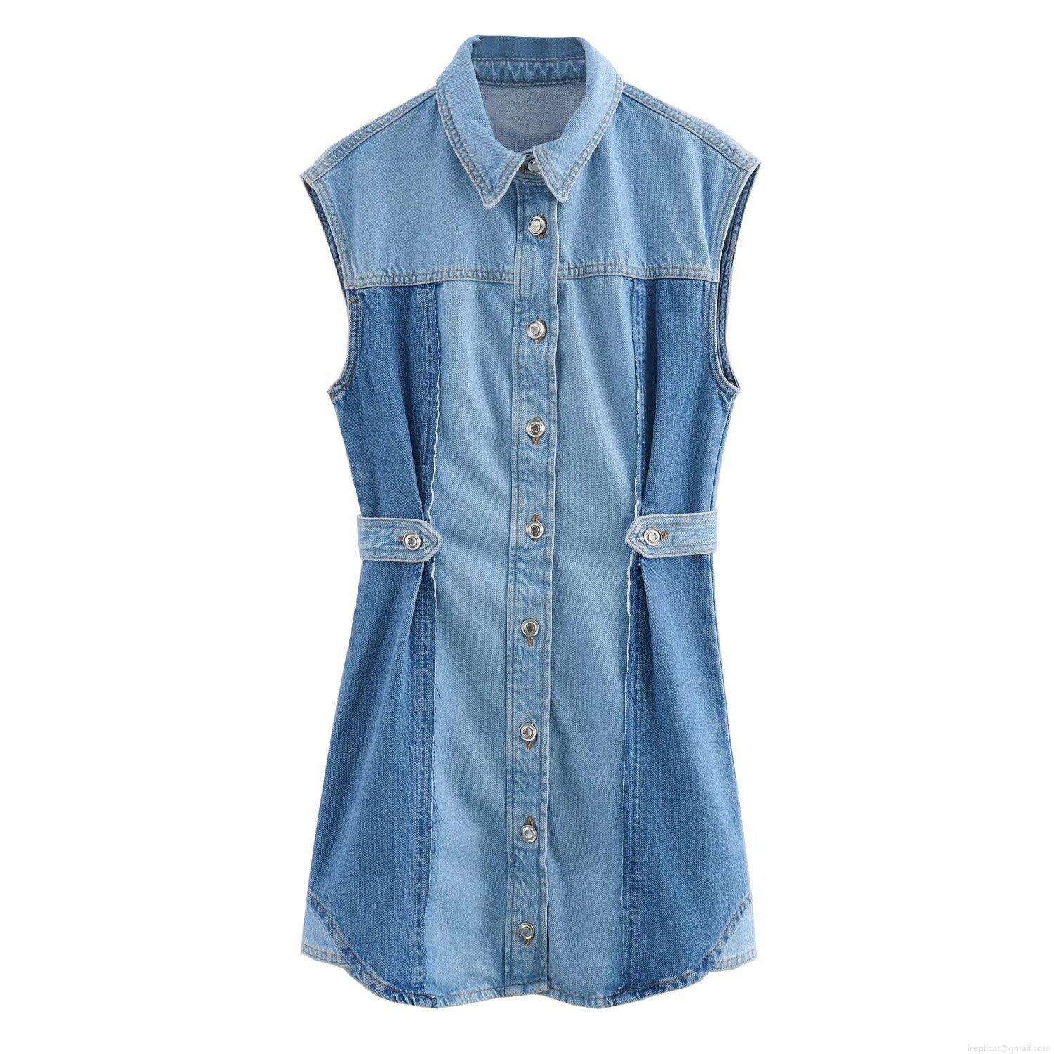 • Women Patchwork Denim Two Piece Set Streetwear Casual Sleeveless Denim Jacket Vest Top And High Waisted Patchwork Denim Straight Pants Outfit For Women