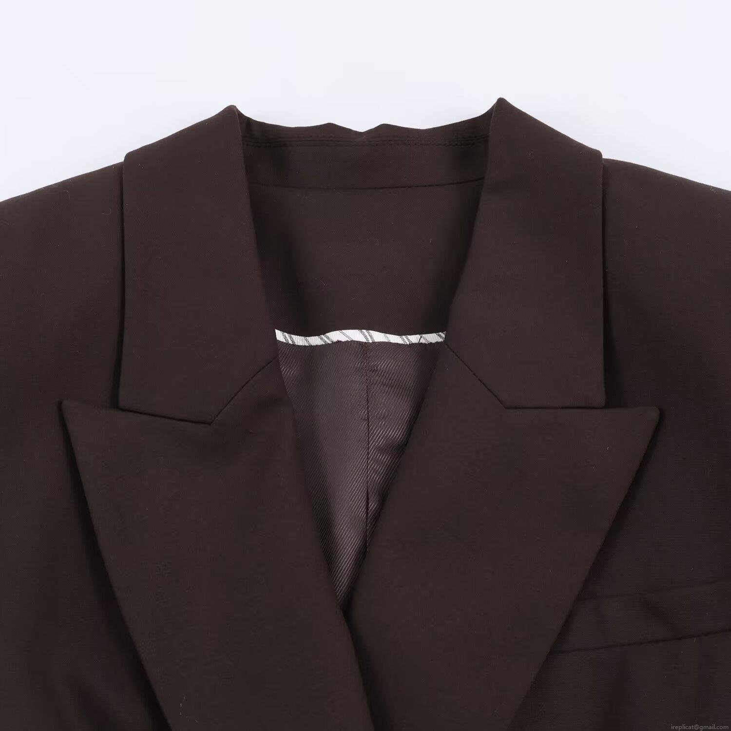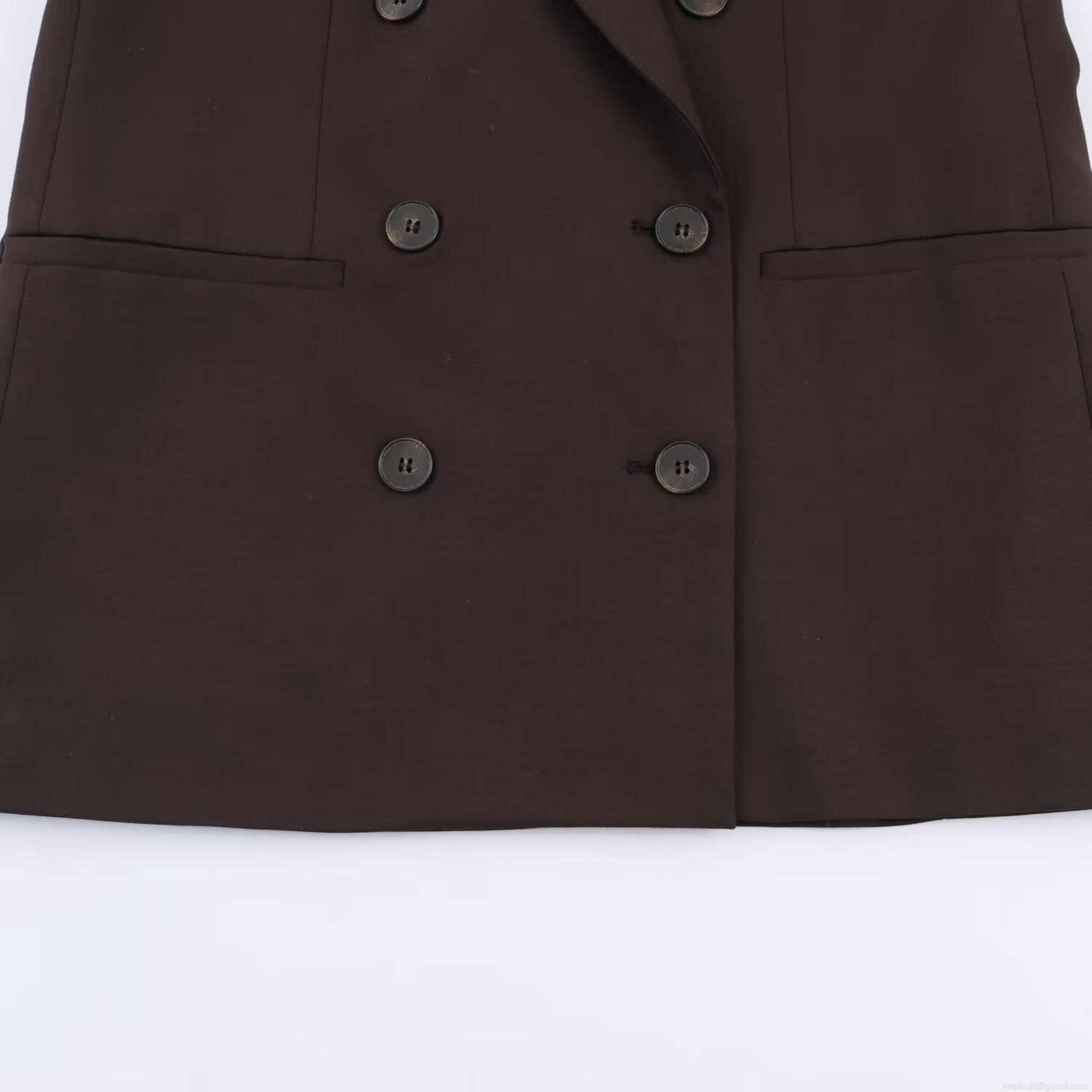 • Women Professional Double Breasted Blazer Jacket And Straight Leg Trousers Two Piece Set Office Commute Solid Coffee Brown High Quality Suit