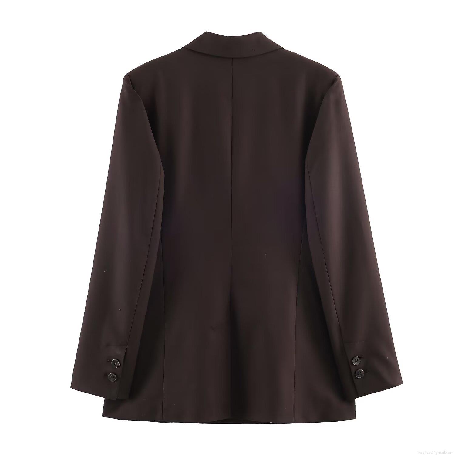 Women Professional Double Breasted Blazer Jacket And Straight Leg Trousers Two Piece Set Office Commute Solid Coffee Brown High Quality Suit