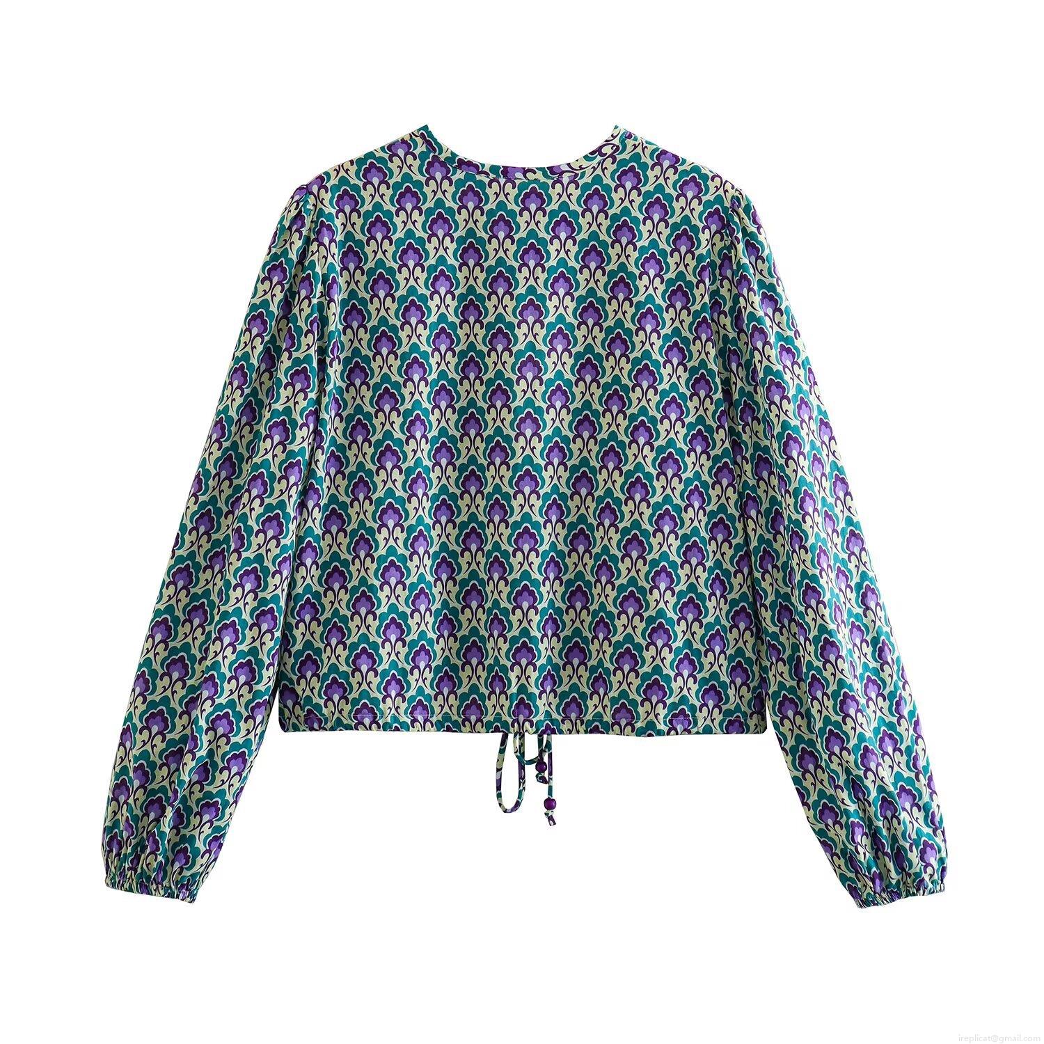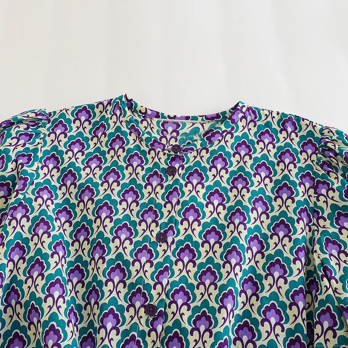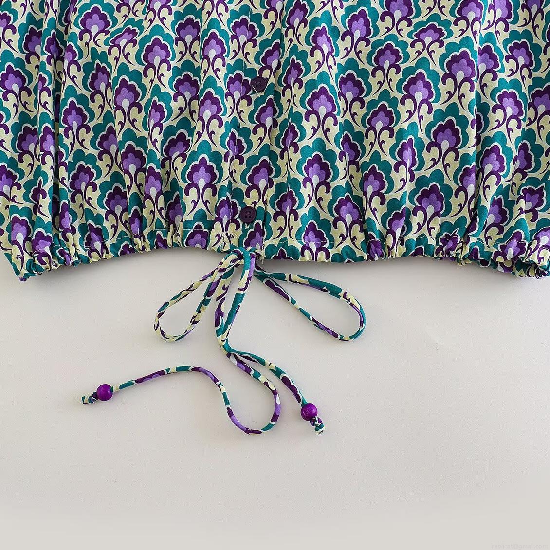 • Women Retro Bohemian Geometric Print Two Piece Set Long Sleeve Button Top And High Waist Wide Leg Pants Polyester Casual Summer Outfit