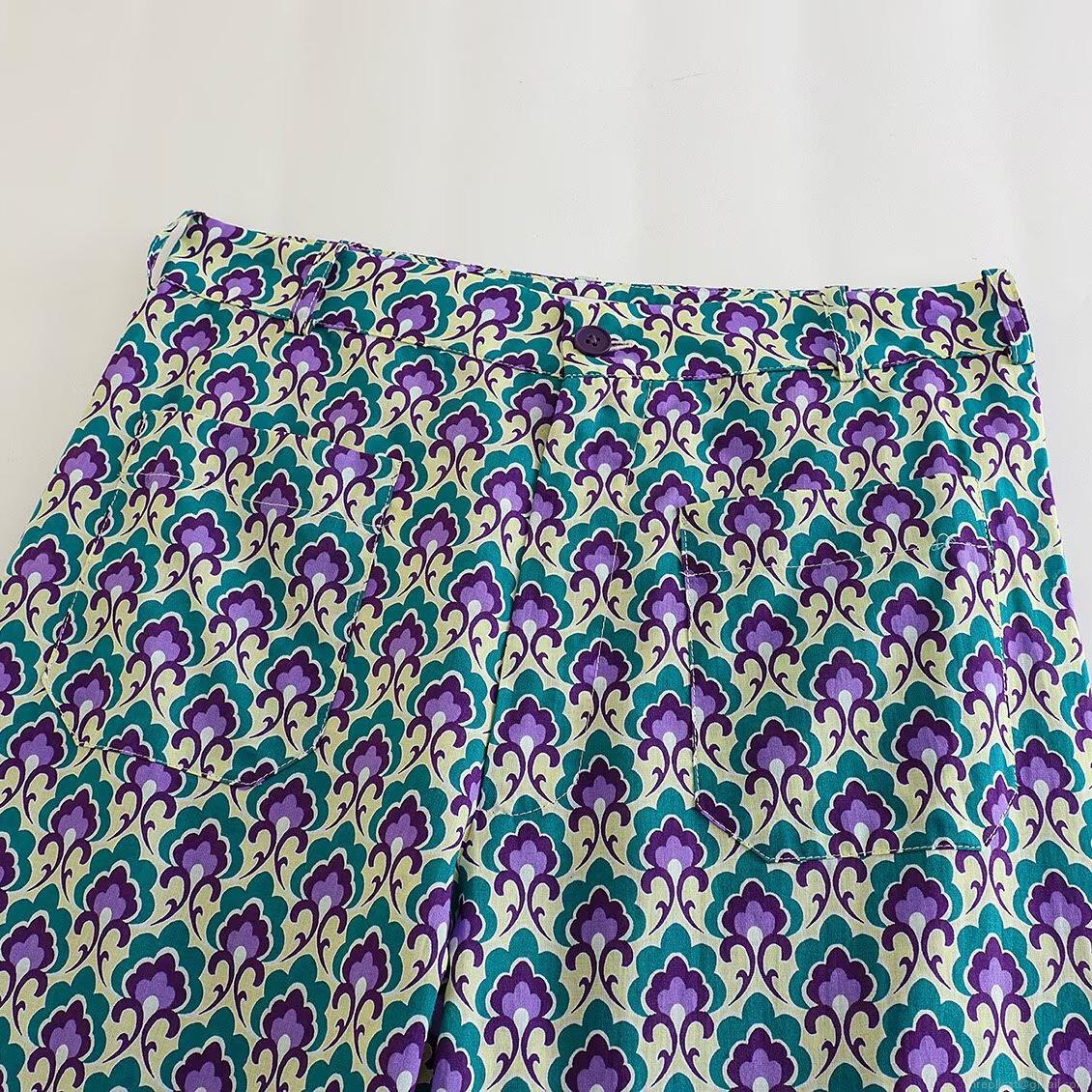 Geometric, Flowers, Printing, Drawstring, Wide-leg, Beaded Decorations, Pop Art Pattern