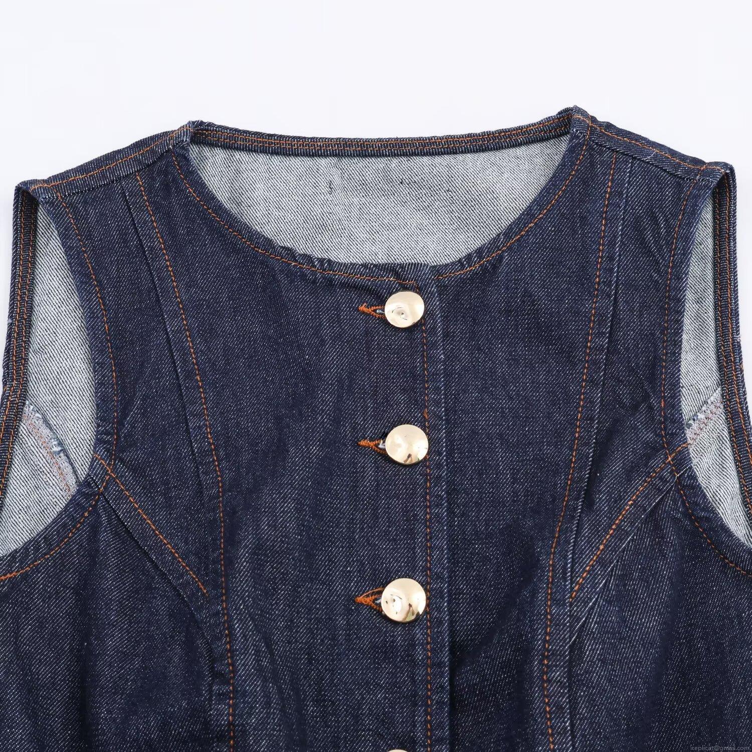 • Women Retro Denim Vest and Wide Leg Pants Set Vintage Sleeveless Waistcoat High Waist Straight Trousers With Croc Embossed Belt Casual Autumn 2 Piece Outfit