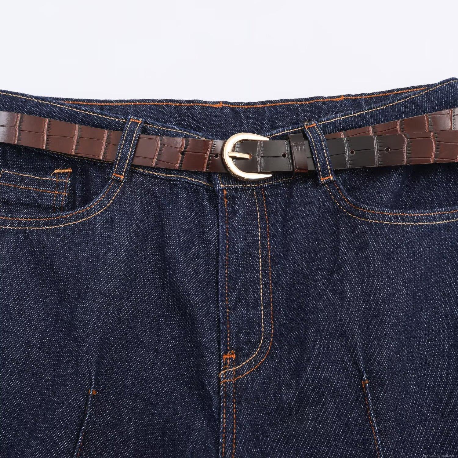 Solid Color, Exposed Wiring, Metal Buttons, Slim Fit, High-waisted Wide-leg Pants, Crocodile-patterned Belt