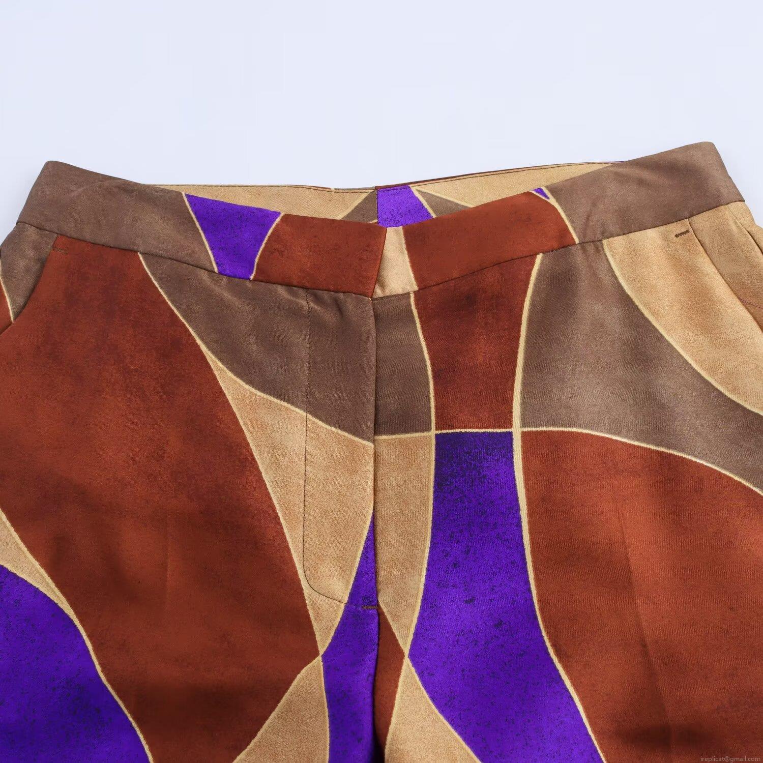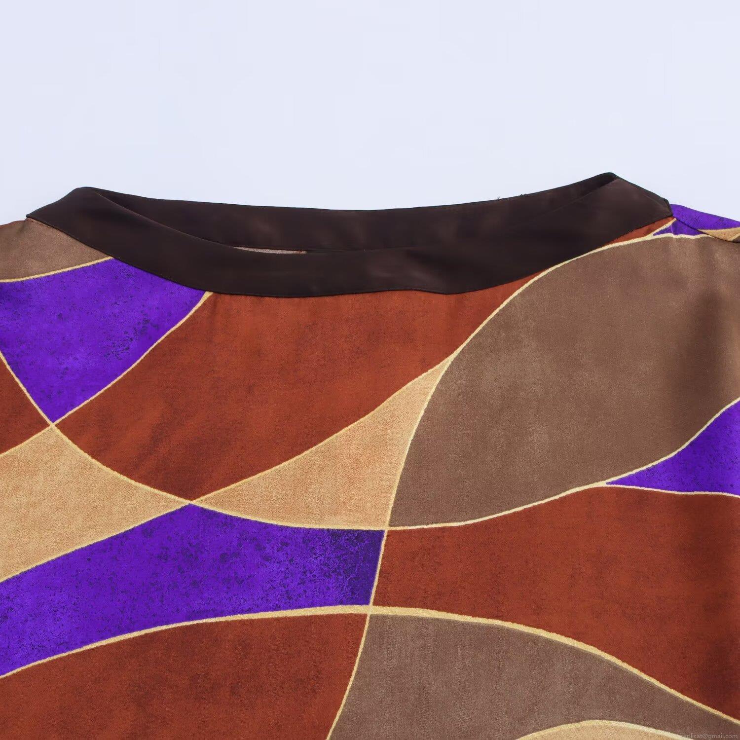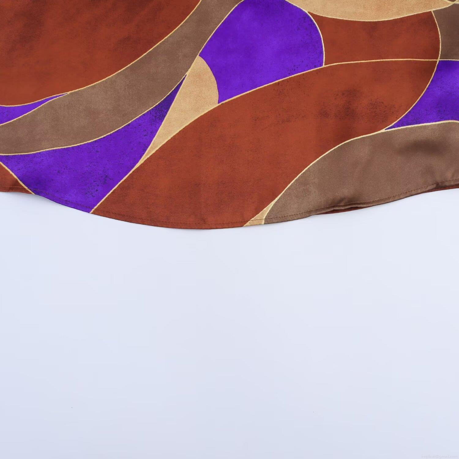 • Women Retro Geometric Print Satin Two Piece Set Long Sleeve Slash Neck Blouse And High Waist Wide Leg Pants Casual Elegant Autumn Outfit