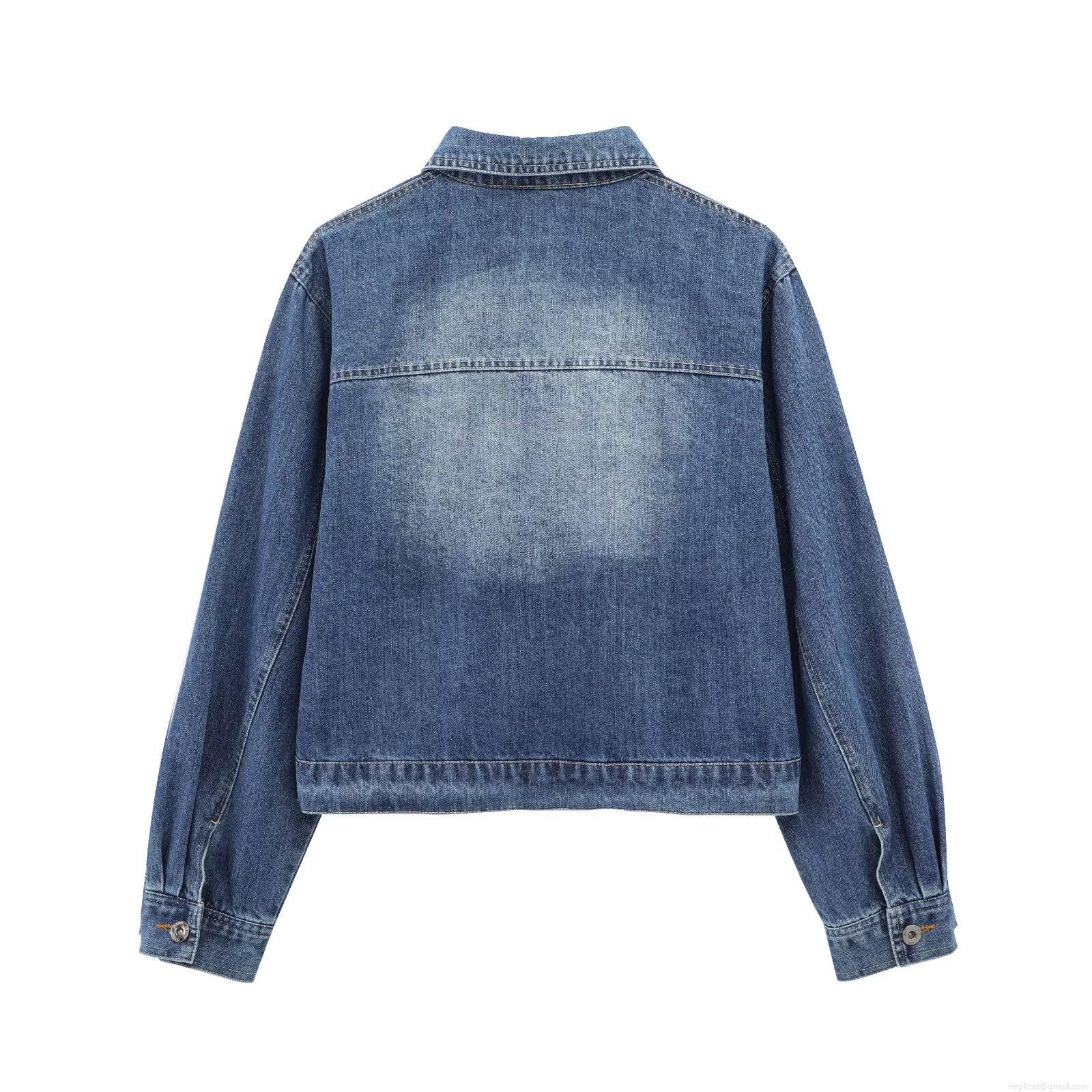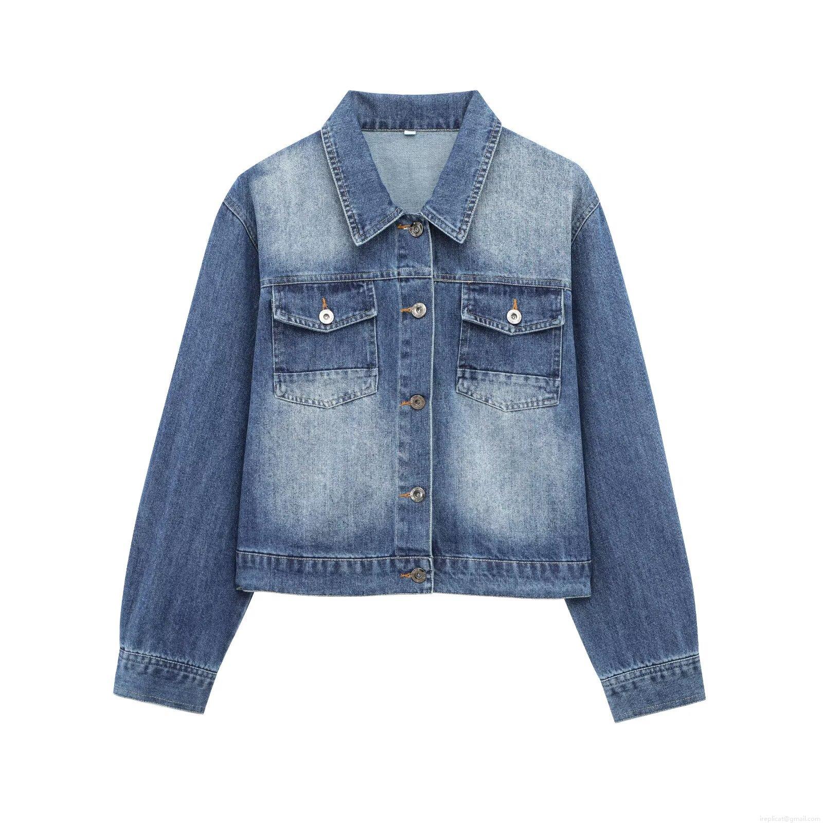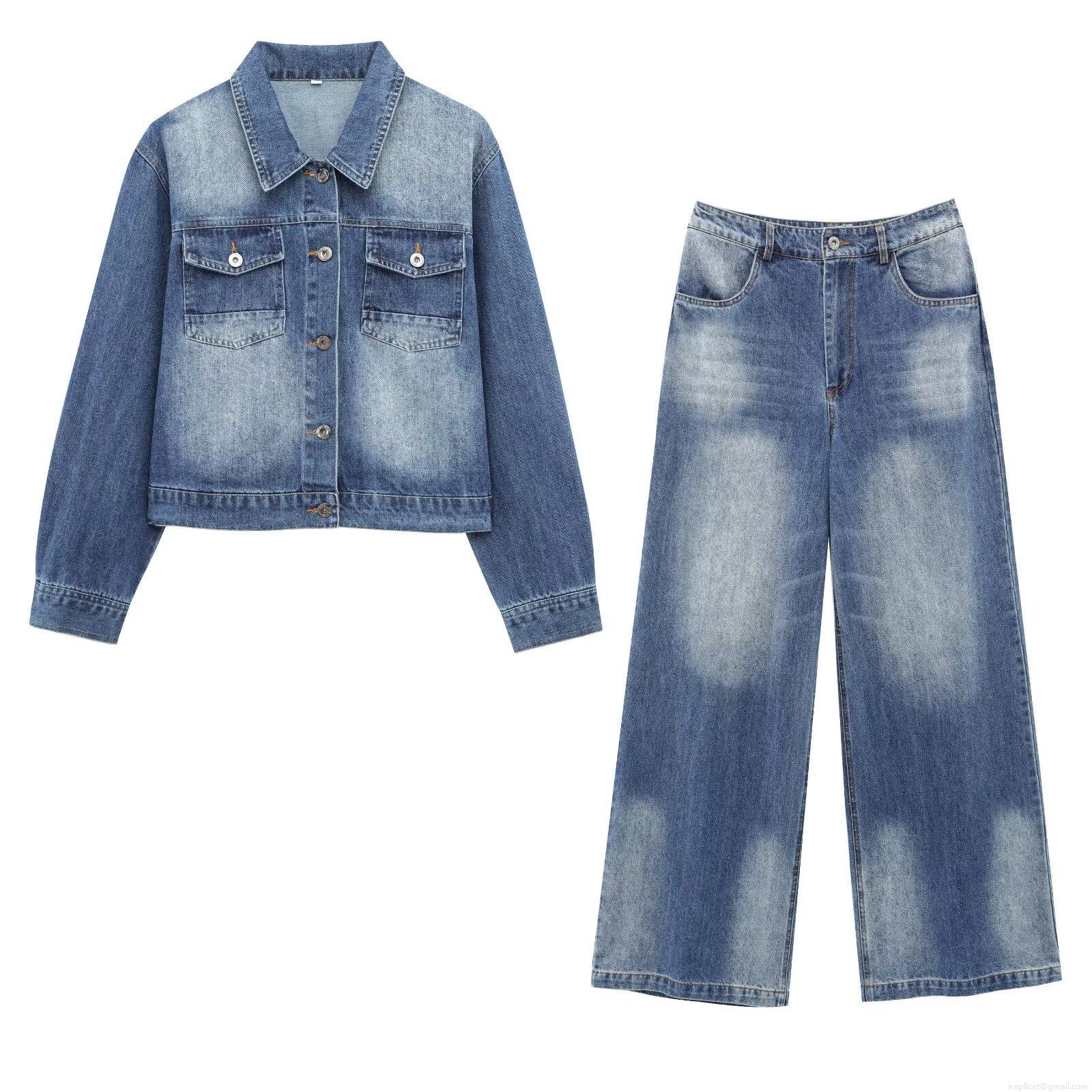 • Women Retro Washed Denim Two Piece Set Short Jean Jacket and High Waist Straight Wide Leg Pants Streetwear Outfits Cotton Blend Denim Suits